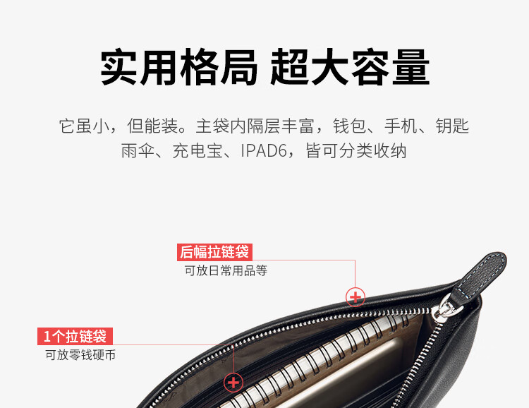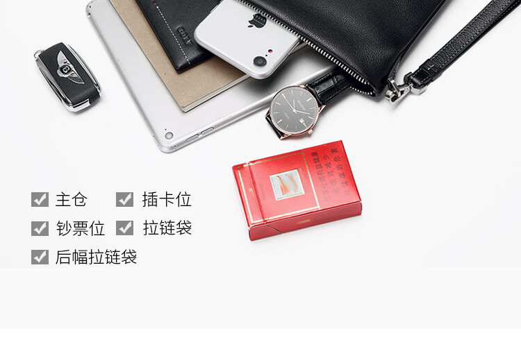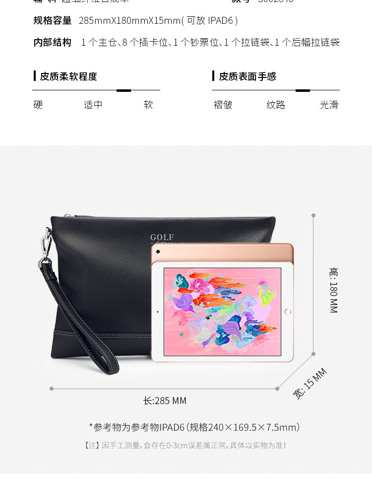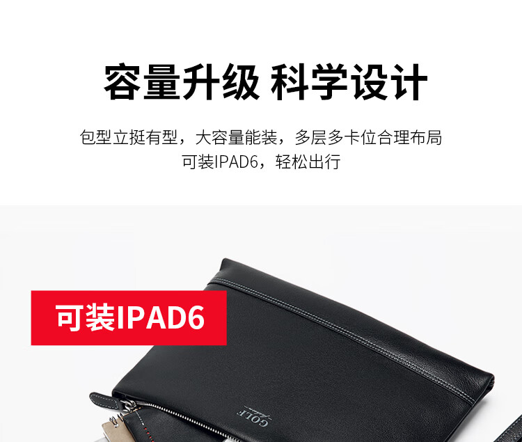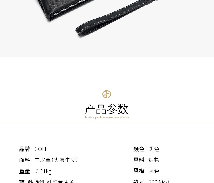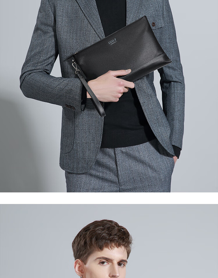 Golf (GOLF) men's handbag soft first-layer cowhide fashion envelope wallet clutch bag multi-card slot clutch bag Father's Day gift