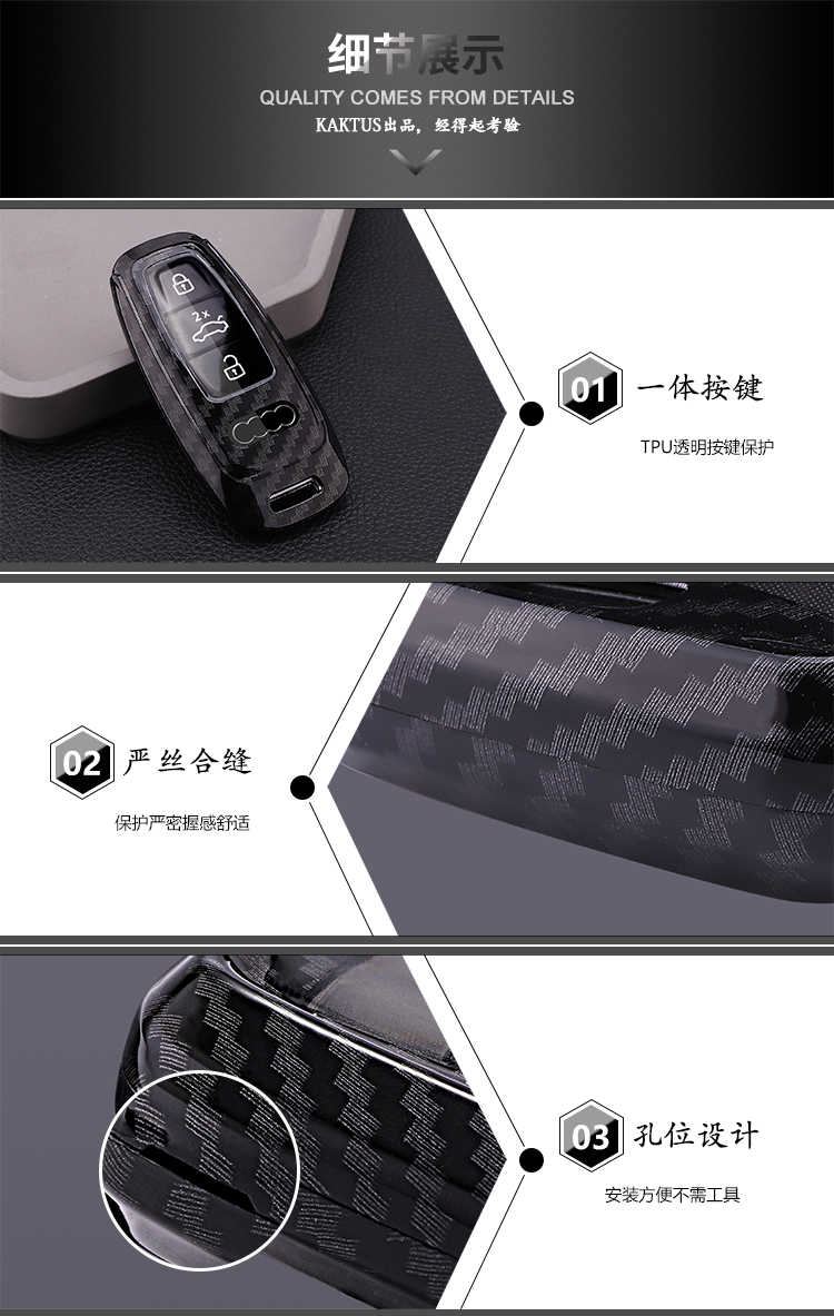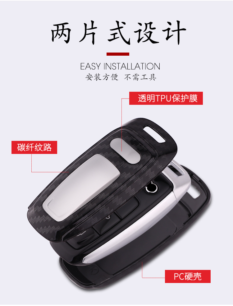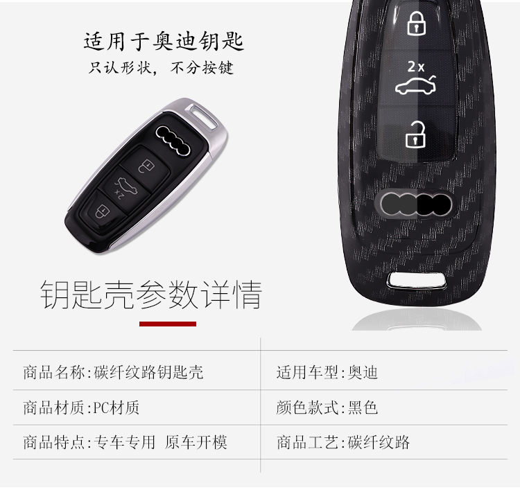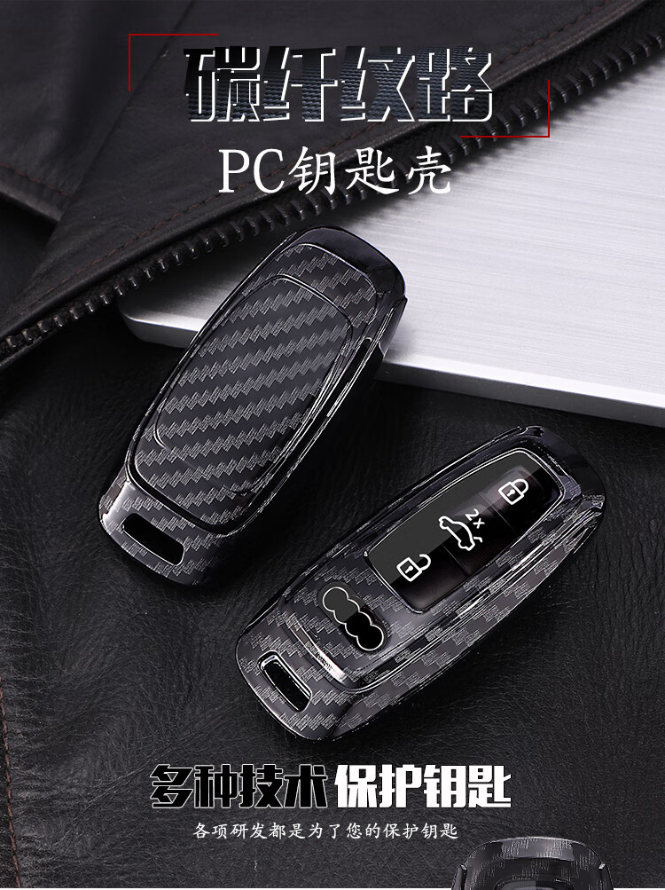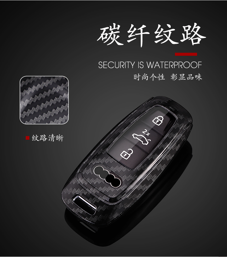 Digalen carbon fiber pattern all-inclusive Audi new A6L key shell a8l A7 A3 Q7 Q8 key cover car key bag car key protective shell keychain men and women