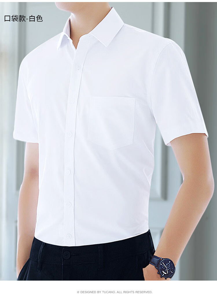 Woodpecker (TUCANO) Hemd Herren Sommer Kurzarmhemd Business formell einfarbig lässig modisch vielseitig Herrenbekleidung weiß XL
