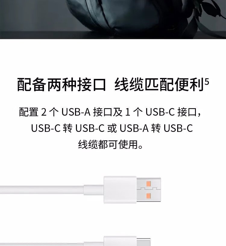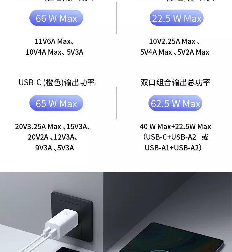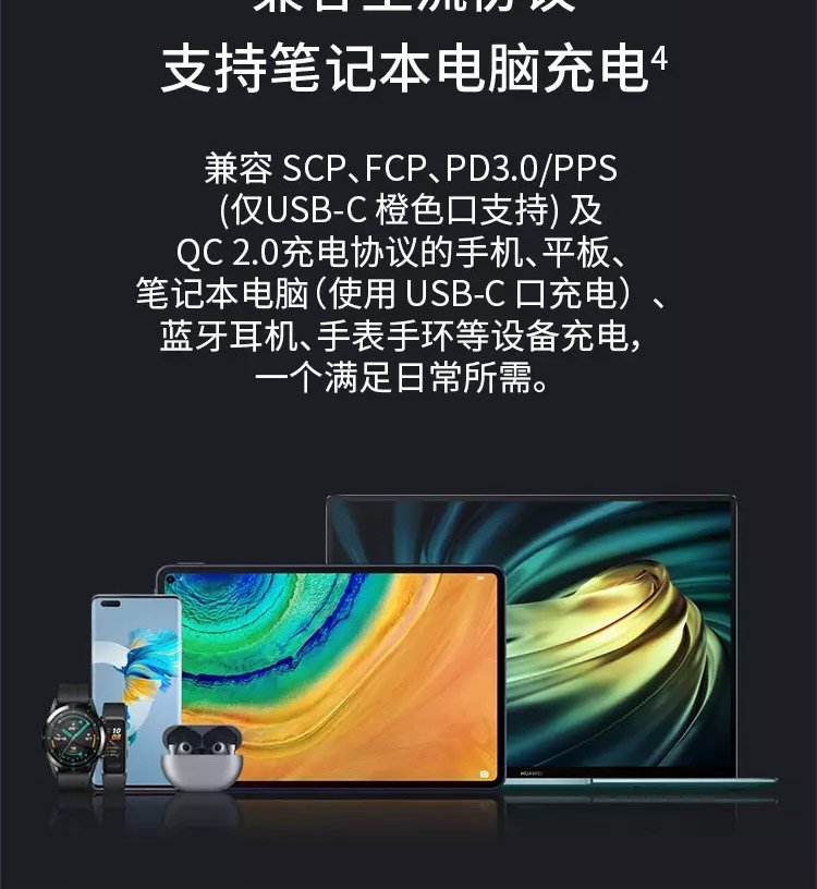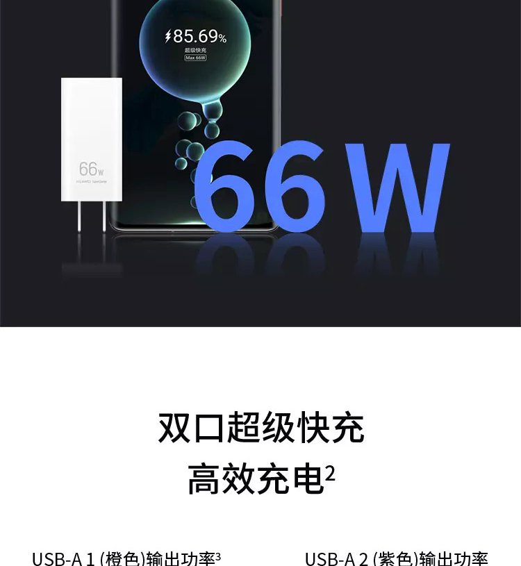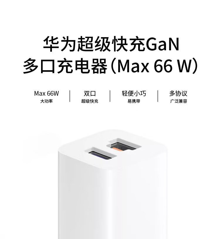 华为原装氮化镓多口充电器 66W 白色 兼容mate60/mate50pro/X5/X3/P60手机笔记本电脑平板