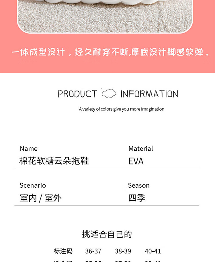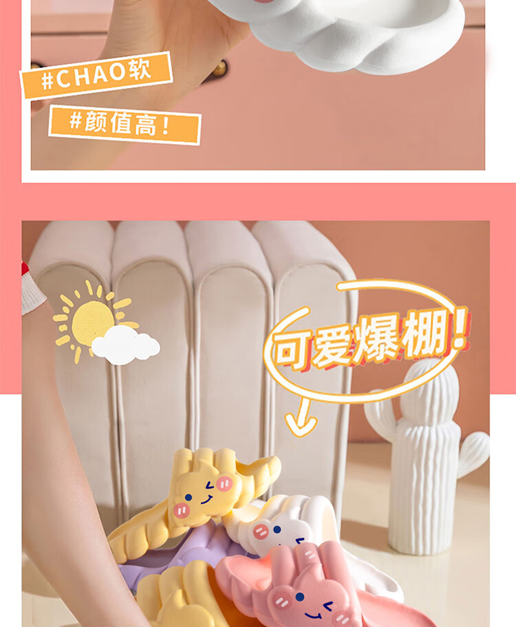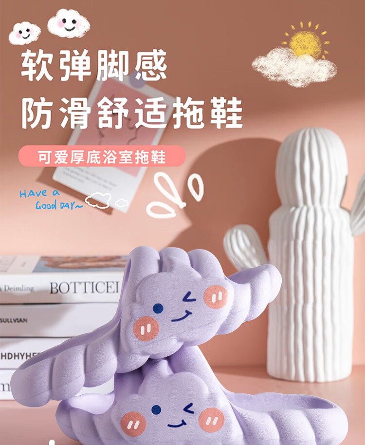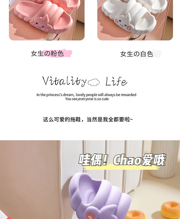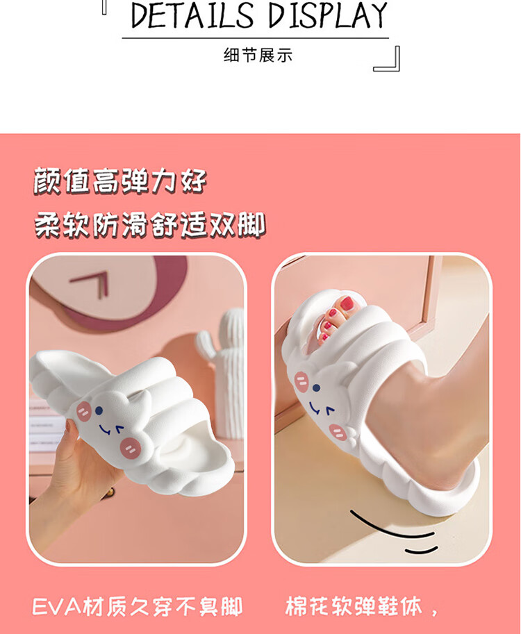 IQGD slippers for women, outdoor home fashion slippers, thickened soft soles, ice cream-milk white 38-39