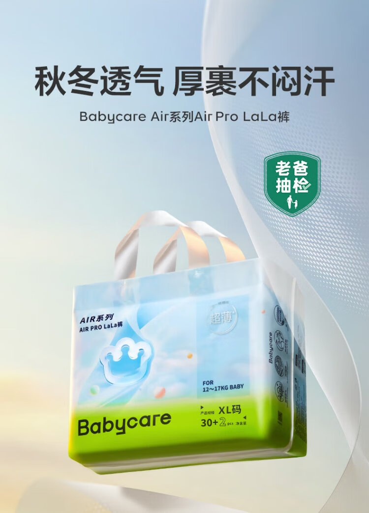 Babycare Air pro pull-up pants extra size XXXL60 tablets (>17kg) baby diapers ultra-thin and breathable for summer