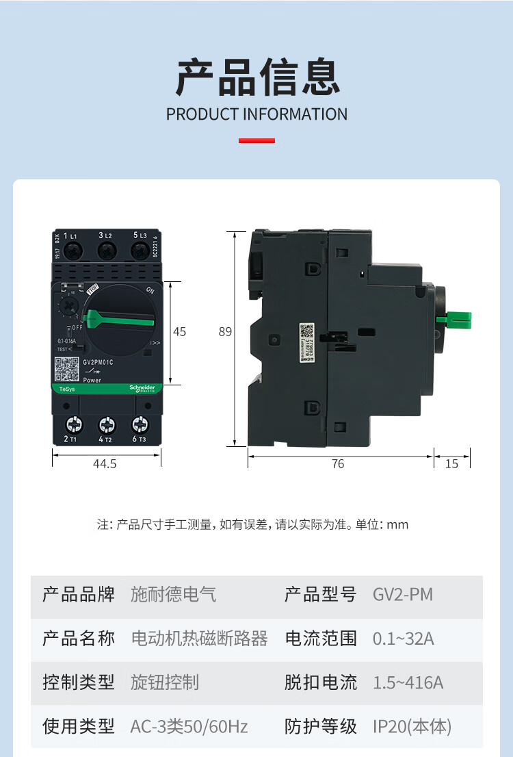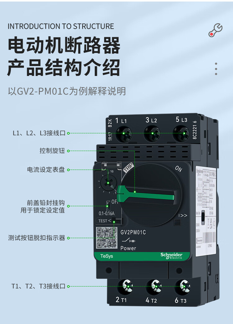 Schneider Electric Motorschutzschalter, thermisch-magnetischer Auslöseknopf, Steuerluftschalter 3P690V GV2PM06C 1~1,6A