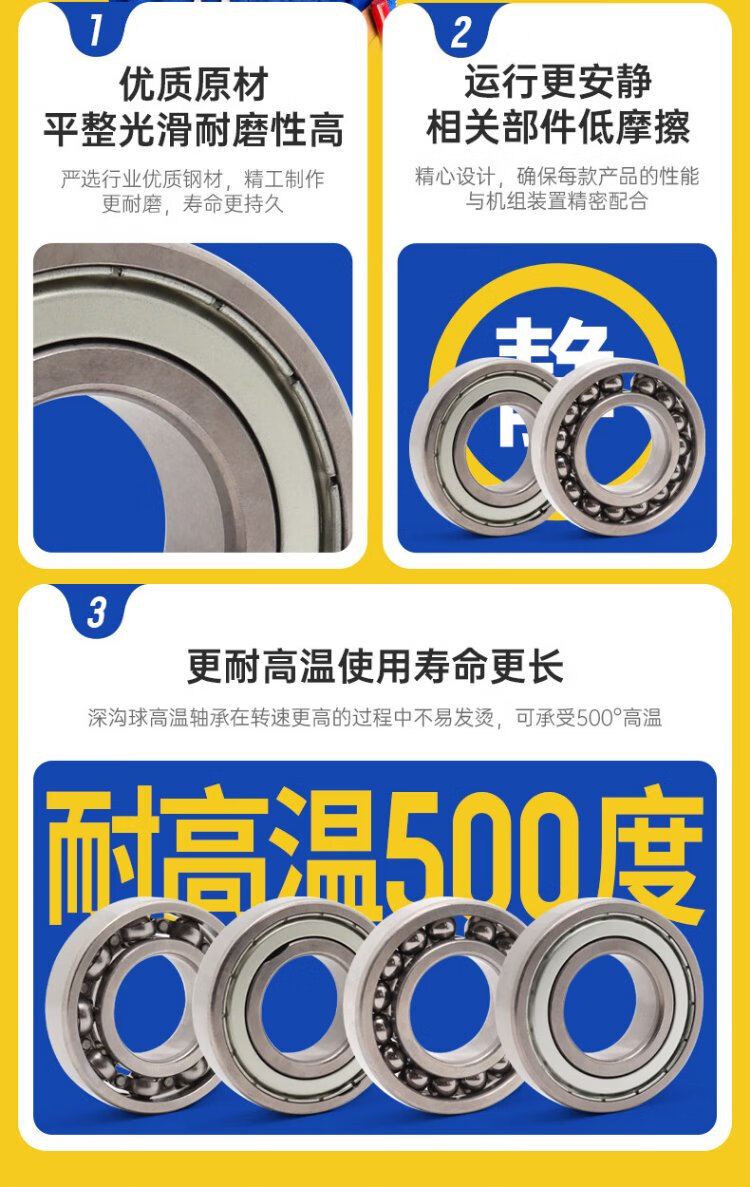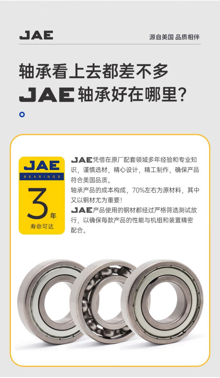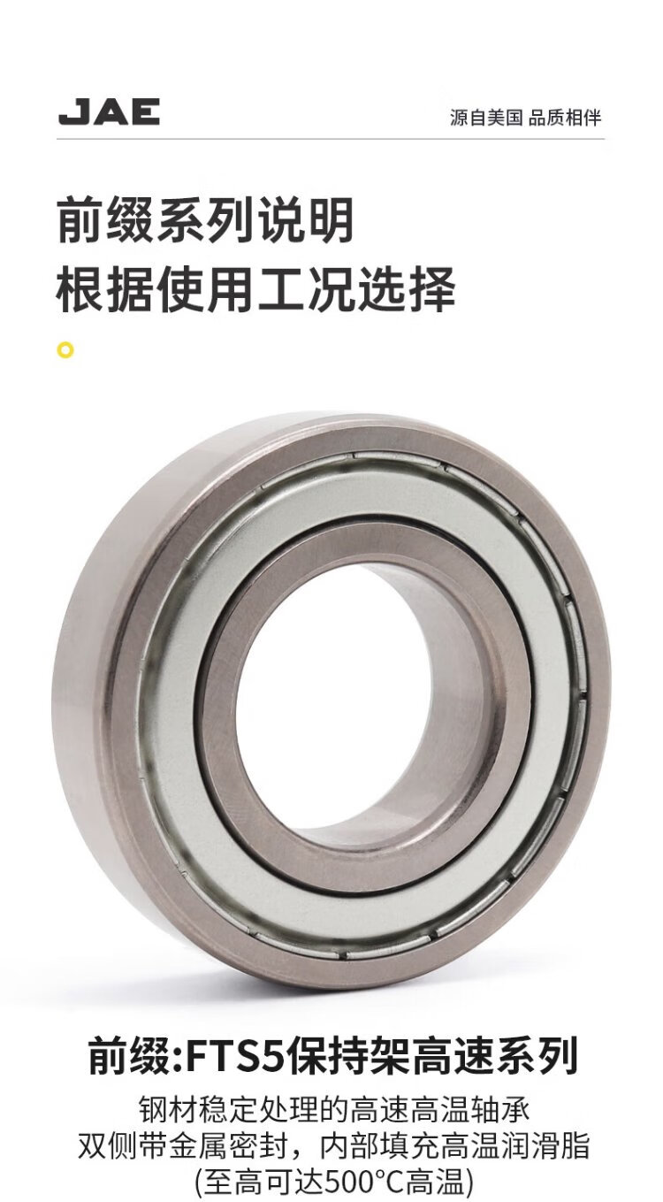 捷艾易/JAE轴承 耐高温500°深沟球轴承6210系列 尺寸:内径50 外径90 宽度20mm FTS5-6210[开式高速]