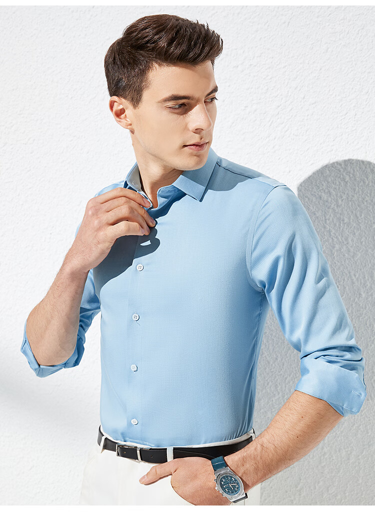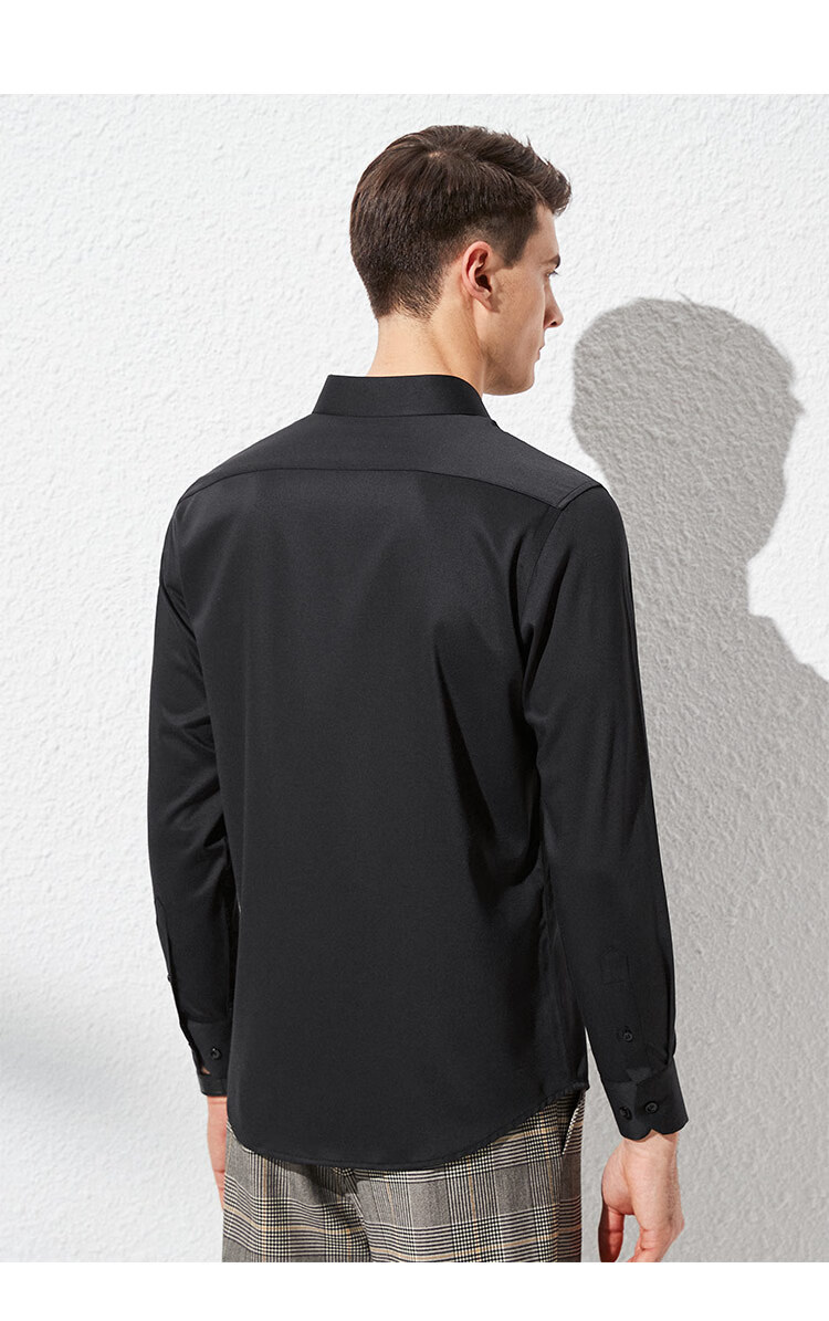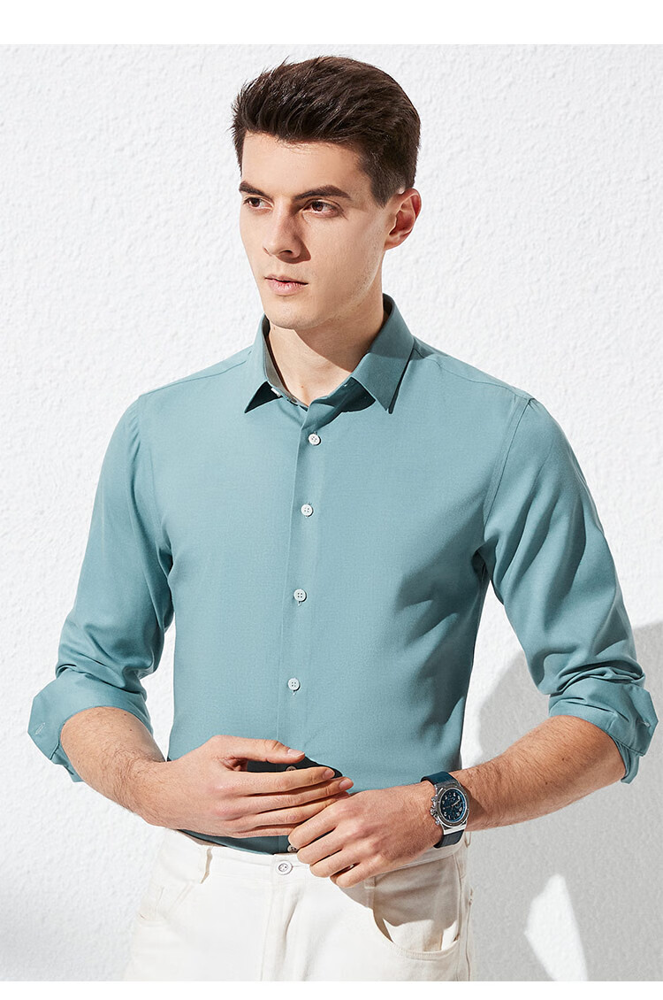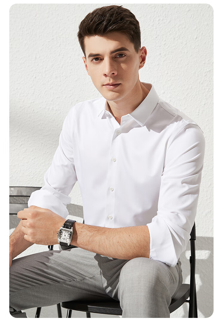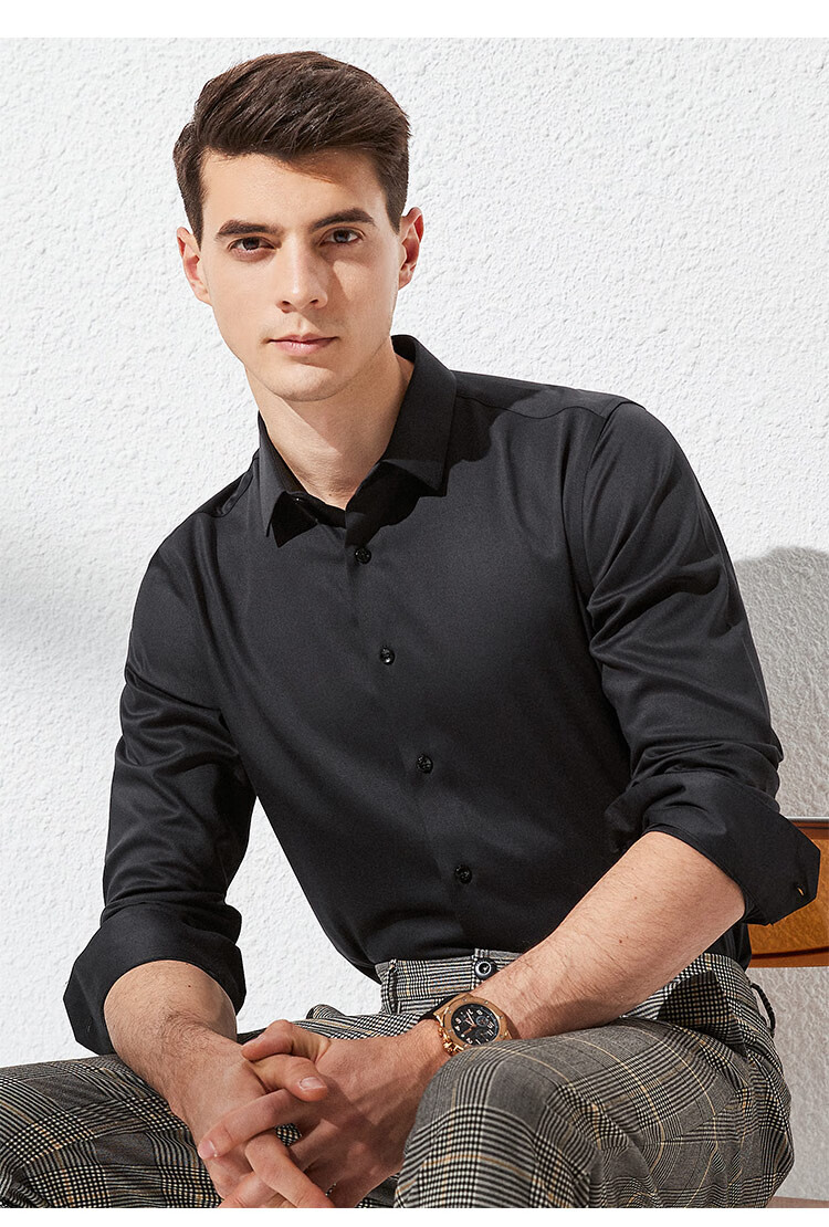 杉杉【桑蚕丝免烫】长袖衬衫男士四季透气商务休闲翻领抗皱男装衬衣