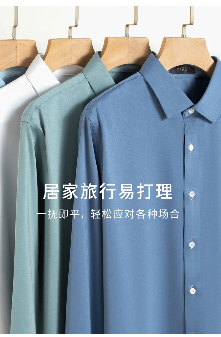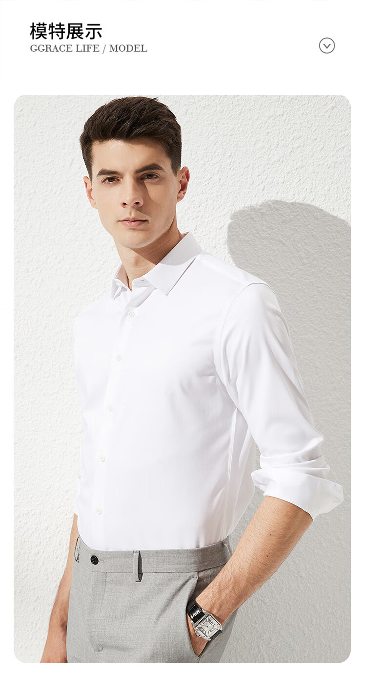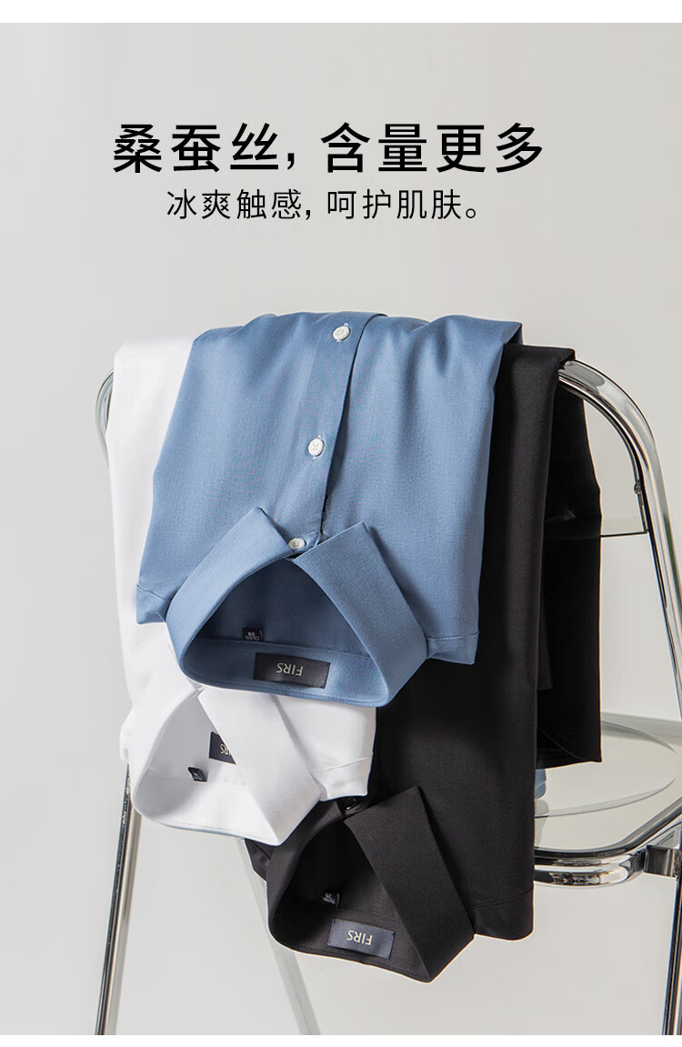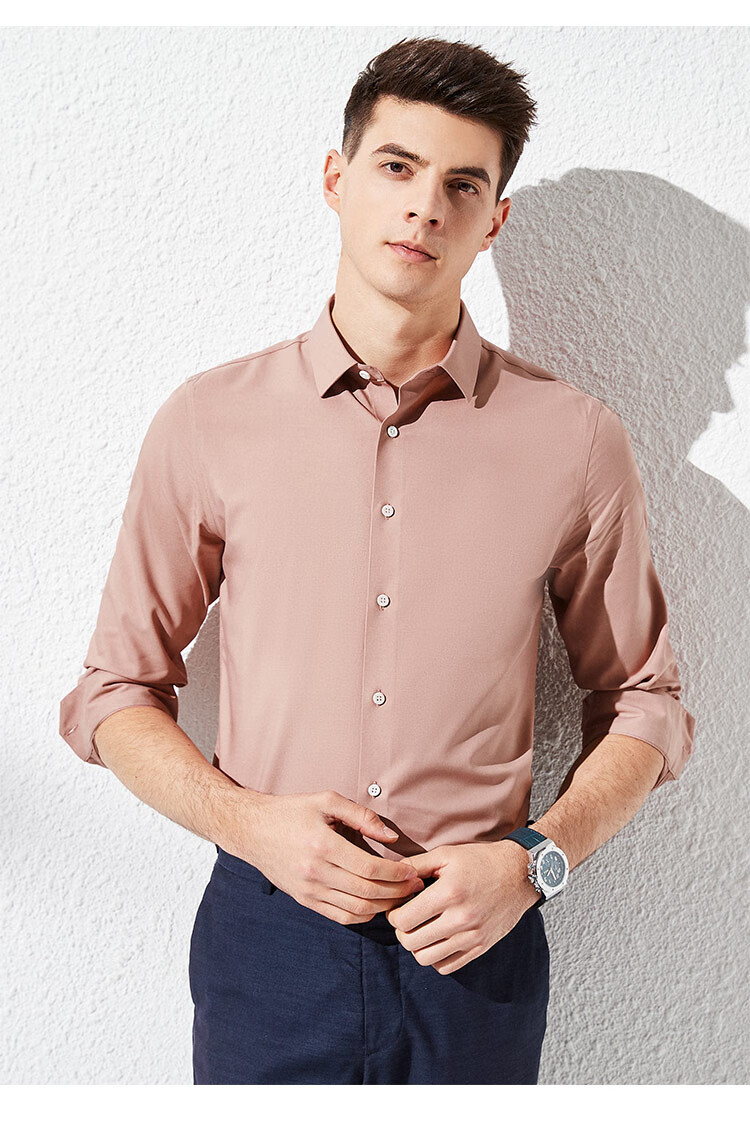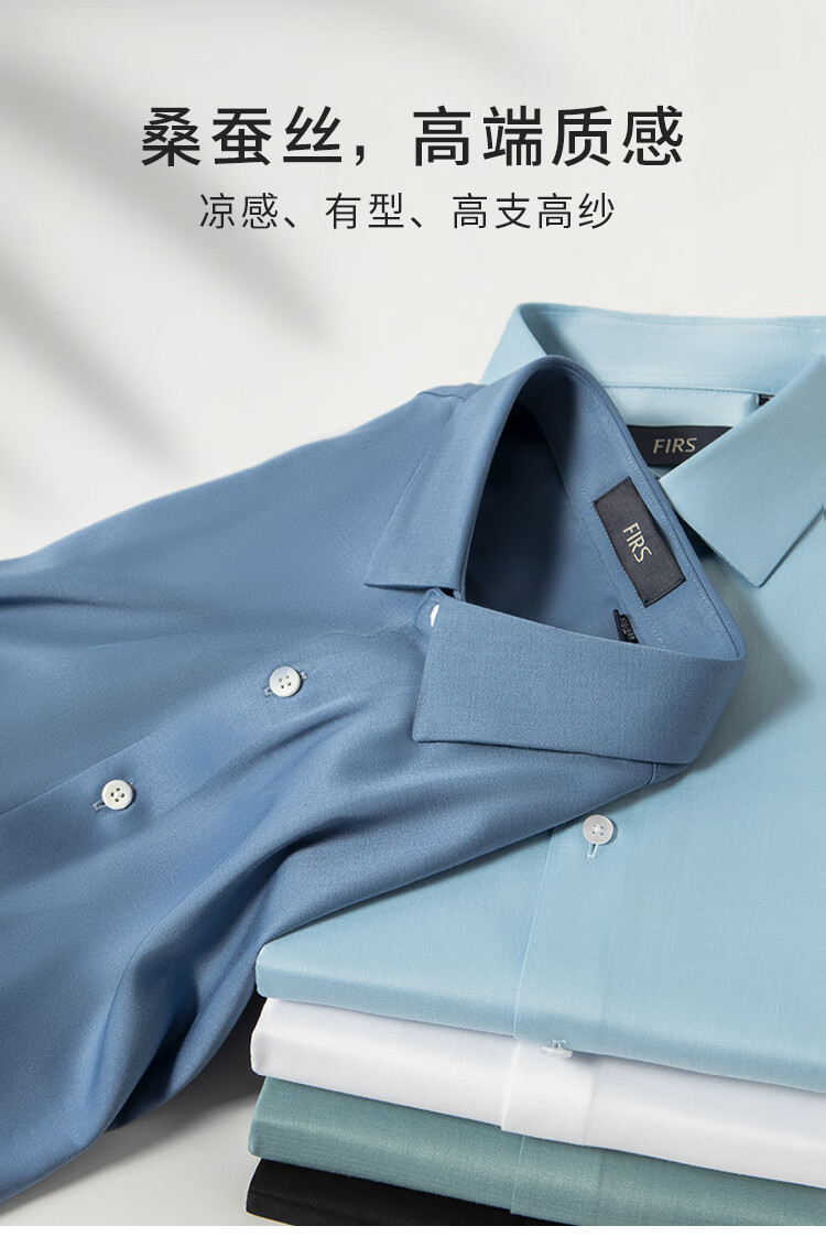 杉杉【桑蚕丝免烫】长袖衬衫男士四季透气商务休闲翻领抗皱男装衬衣