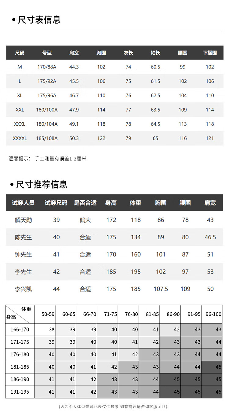 China (cm) 160-165/84-86 165-170 / 88-90 167-172 / 92-96 168-173 / 98-102 170-176 / 106-110