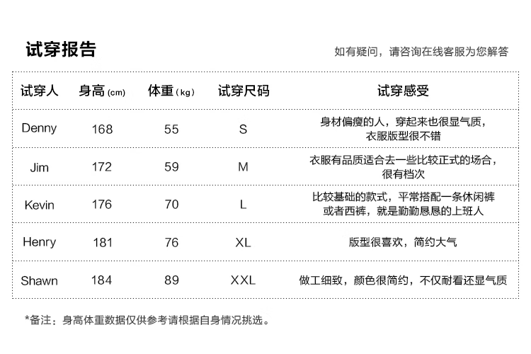 China (cm) 165 / 88-90 170 / 96-98 175 / 108-110 180 / 118-122 185 / 126-130