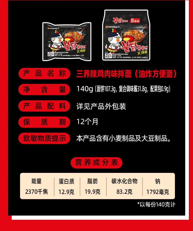 SAMYANG Turkey Noodles Samyang Instant Noodles Bag 700g (140g*5) Instant Noodles Breakfast Snack