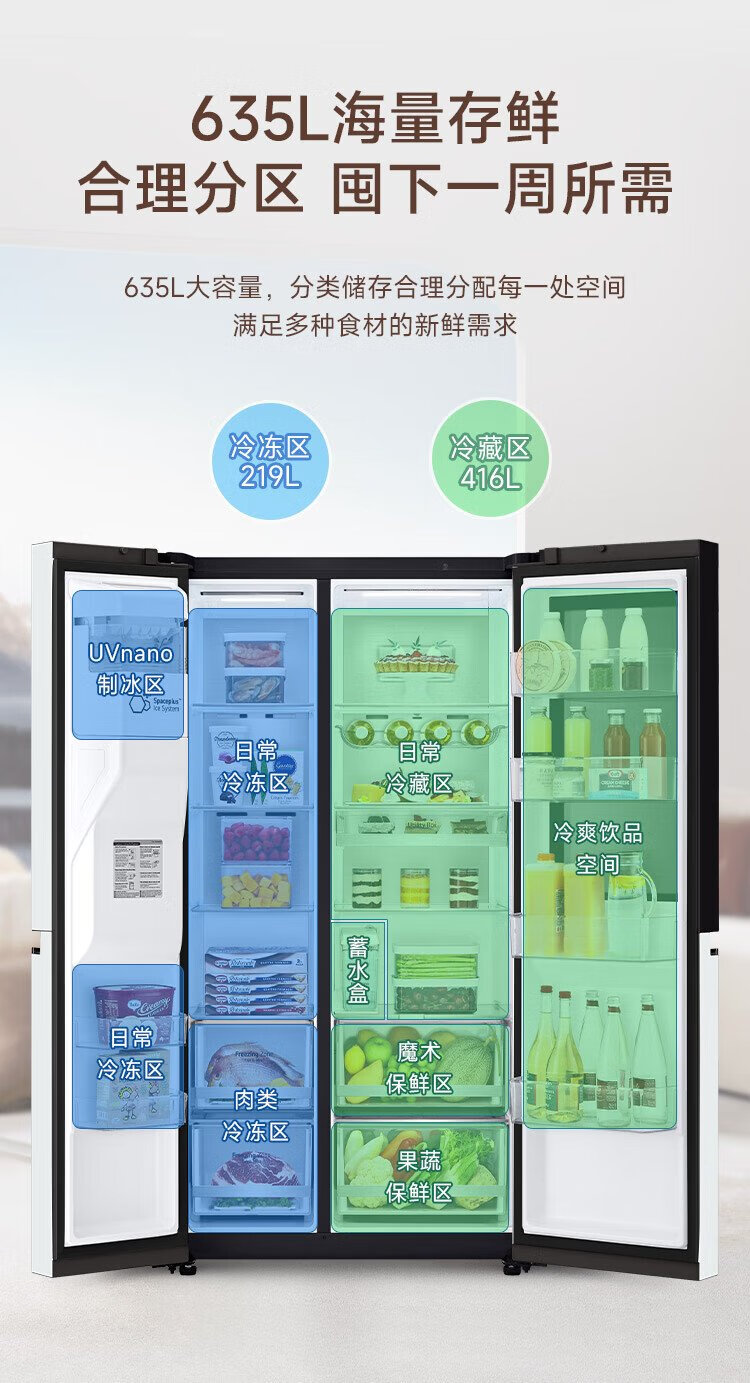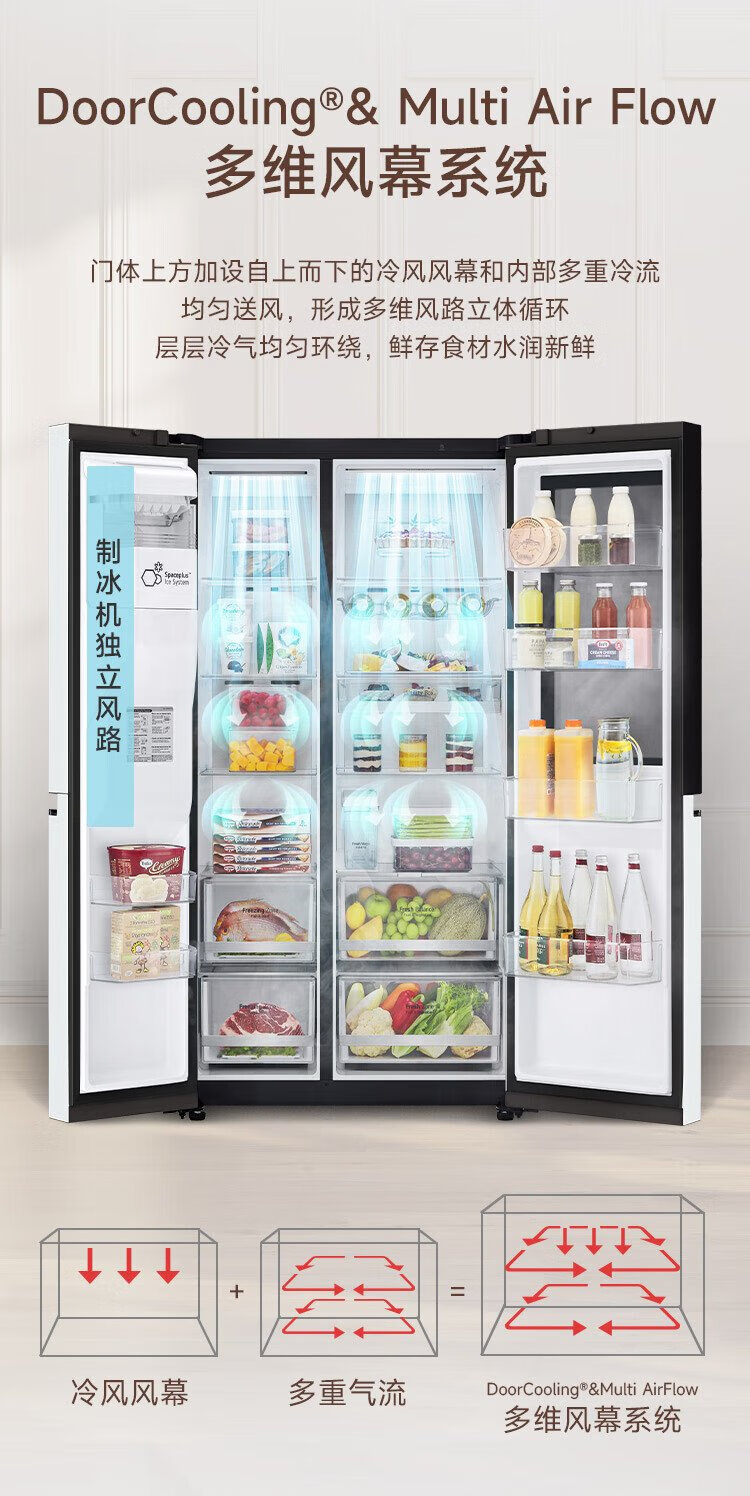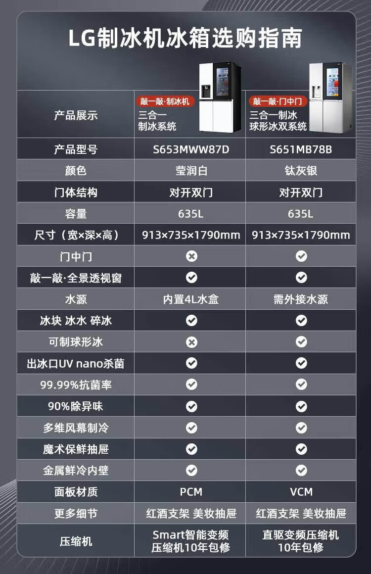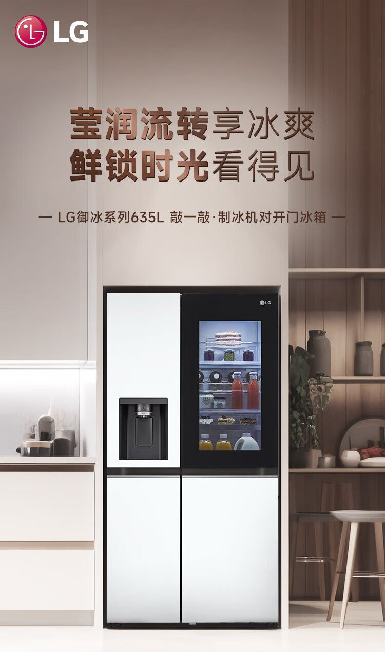 LG fully automatic ice making refrigerator 635L large capacity knock-on refrigerator automatic ice making machine household double-door living room ice bar S653MWW87D national subsidy trade-in