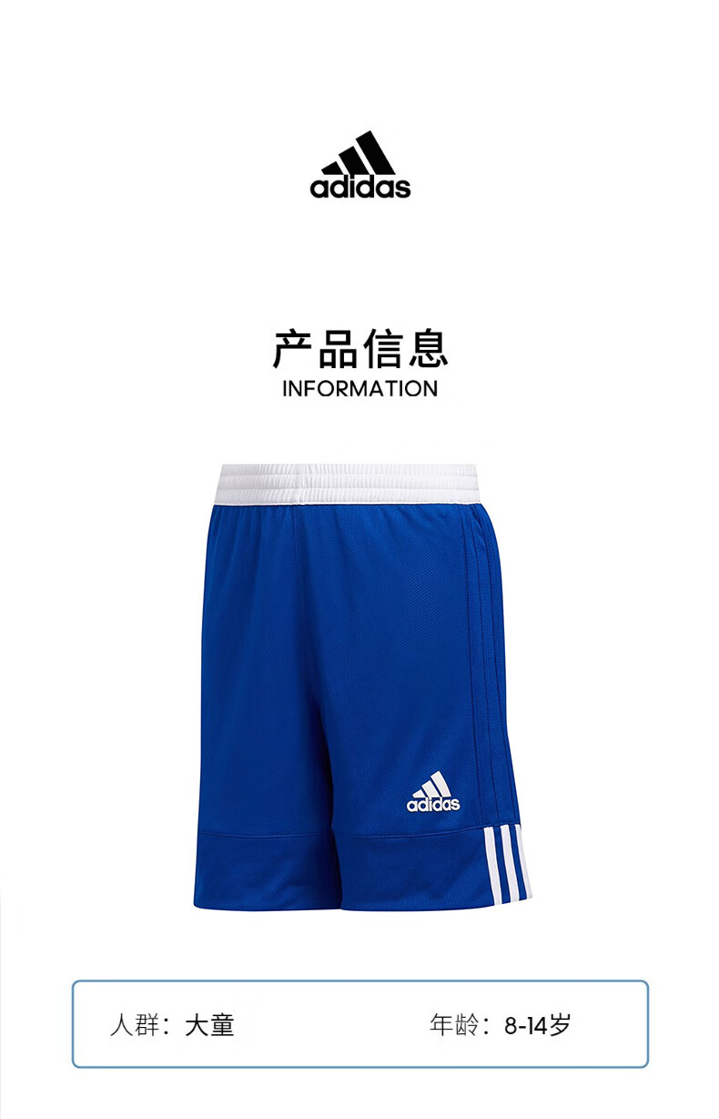 阿迪达斯(adidas)童装儿童篮球短裤男大童双面穿吸湿快干比赛运动五分裤子DY6625蓝