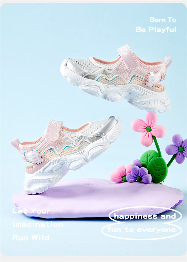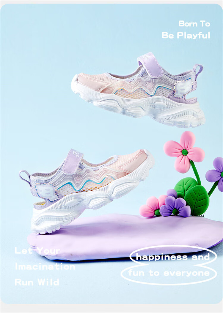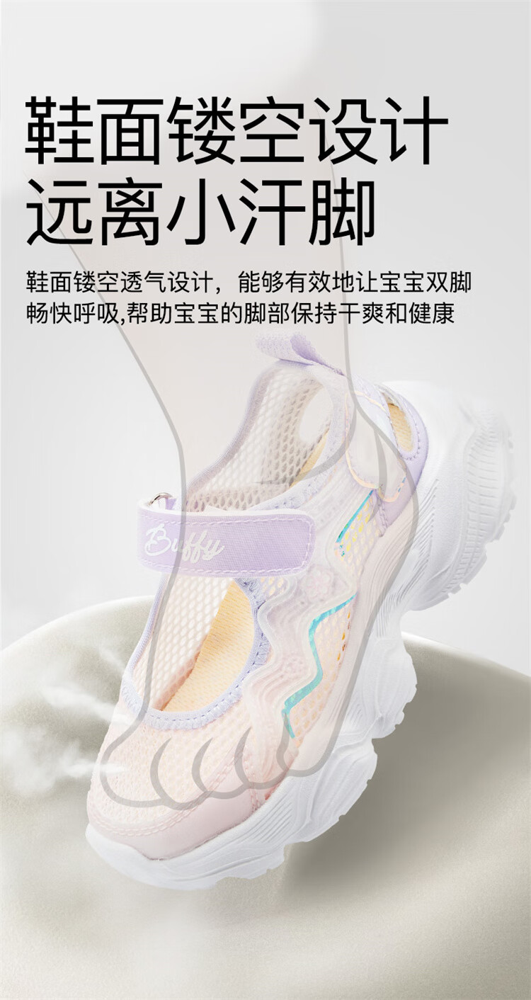 B.Duck Little Yellow Duck Zapatos para niños Zapatos deportivos para niñas Verano Hueco Transpirable Princesa Zapatos individuales Zapatos casuales de red única 5009 Rosa Púrpura 27