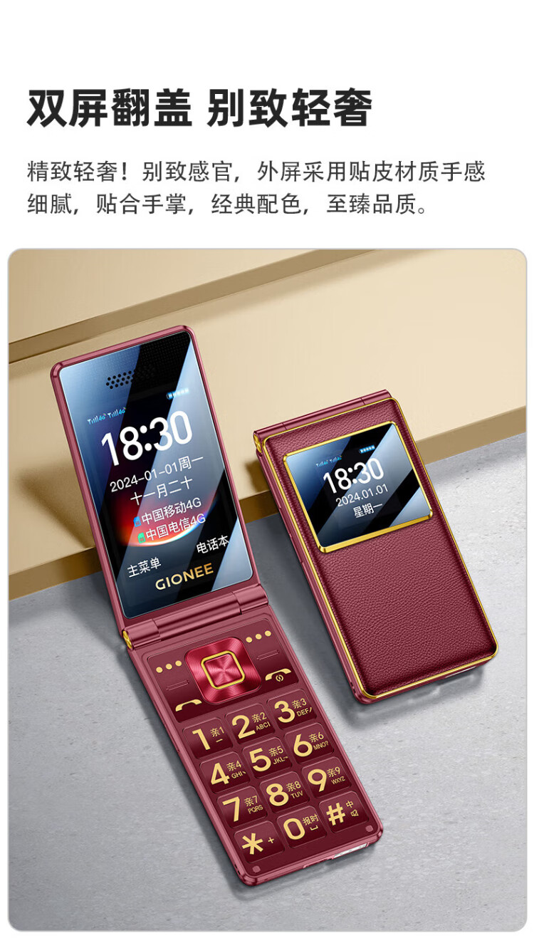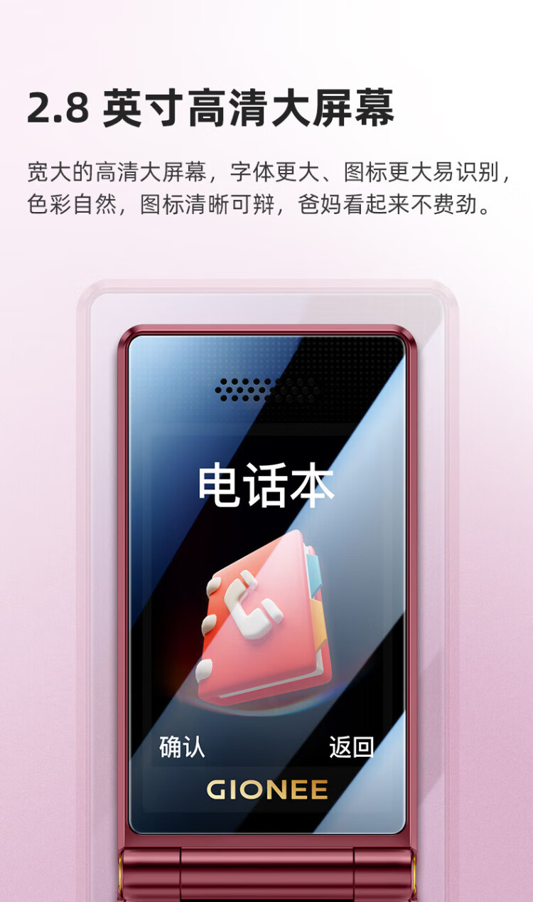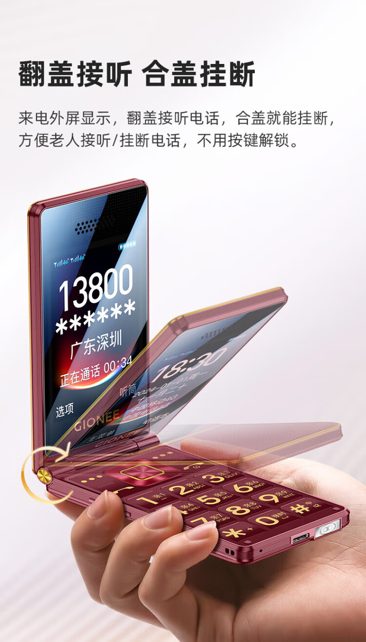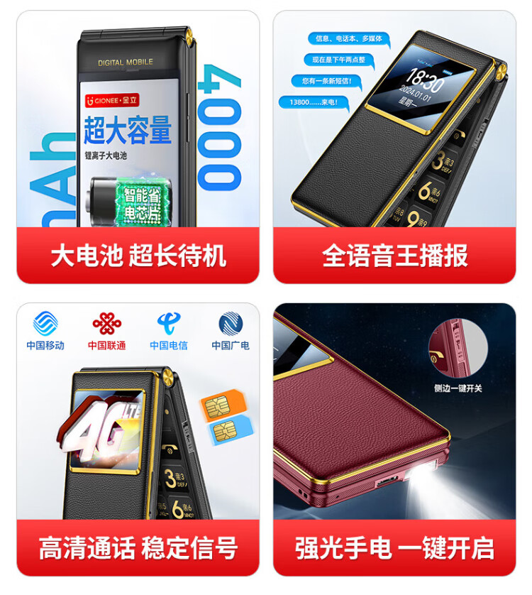 金立(Gionee)老年人手机全网通4G翻盖老年机4000毫安超长待机2.8大屏大字大声学生老人专用按键功能机G680 红色