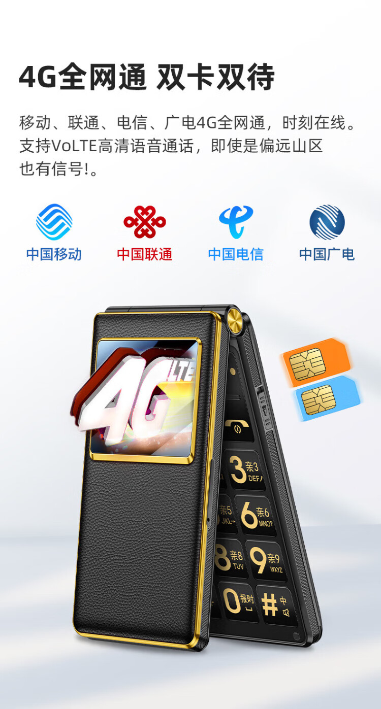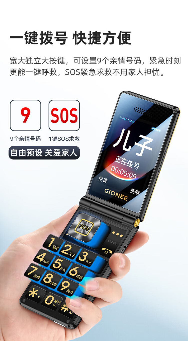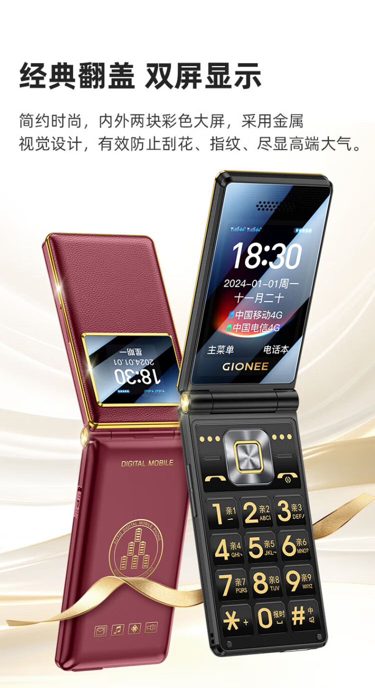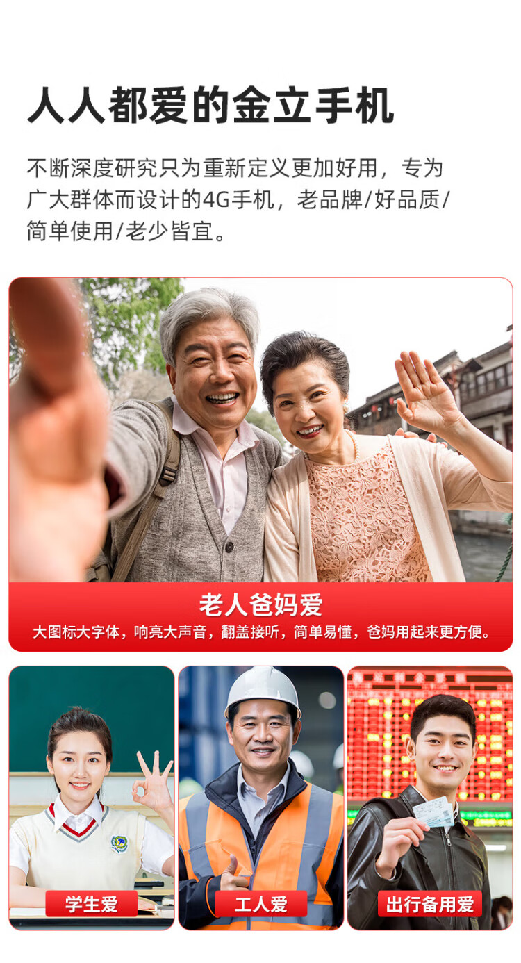金立(Gionee)老年人手机全网通4G翻盖老年机4000毫安超长待机2.8大屏大字大声学生老人专用按键功能机G680 红色