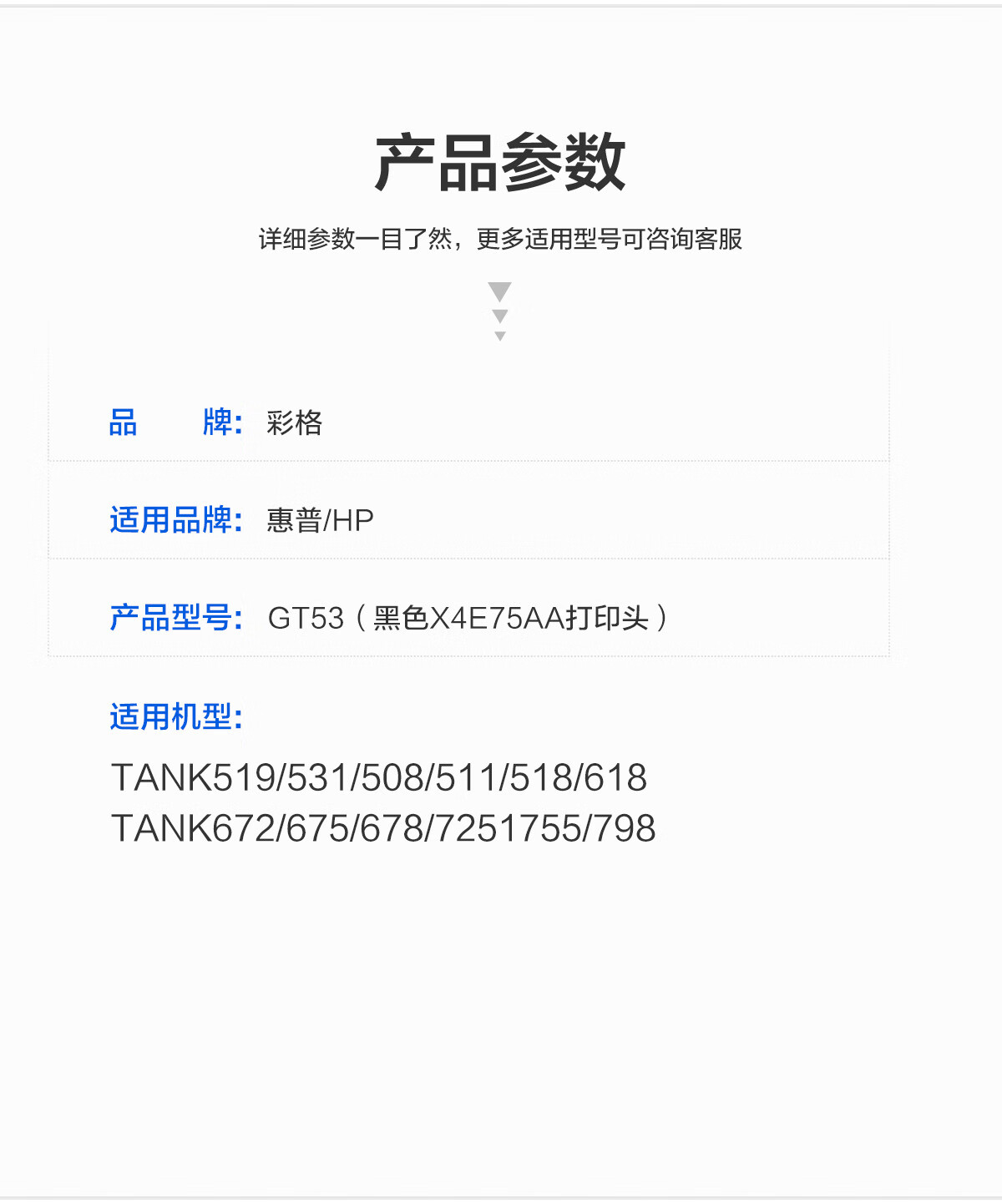 Color grid suitable for HP HP printer GT53 print head tank519 531 508 ink cartridge 511 518 618 nozzle 672 675 678 725 755 798 black regeneration X4E75AA