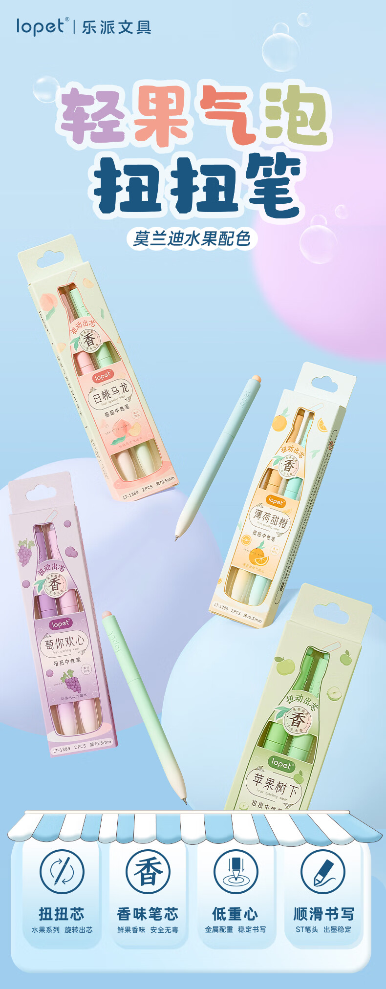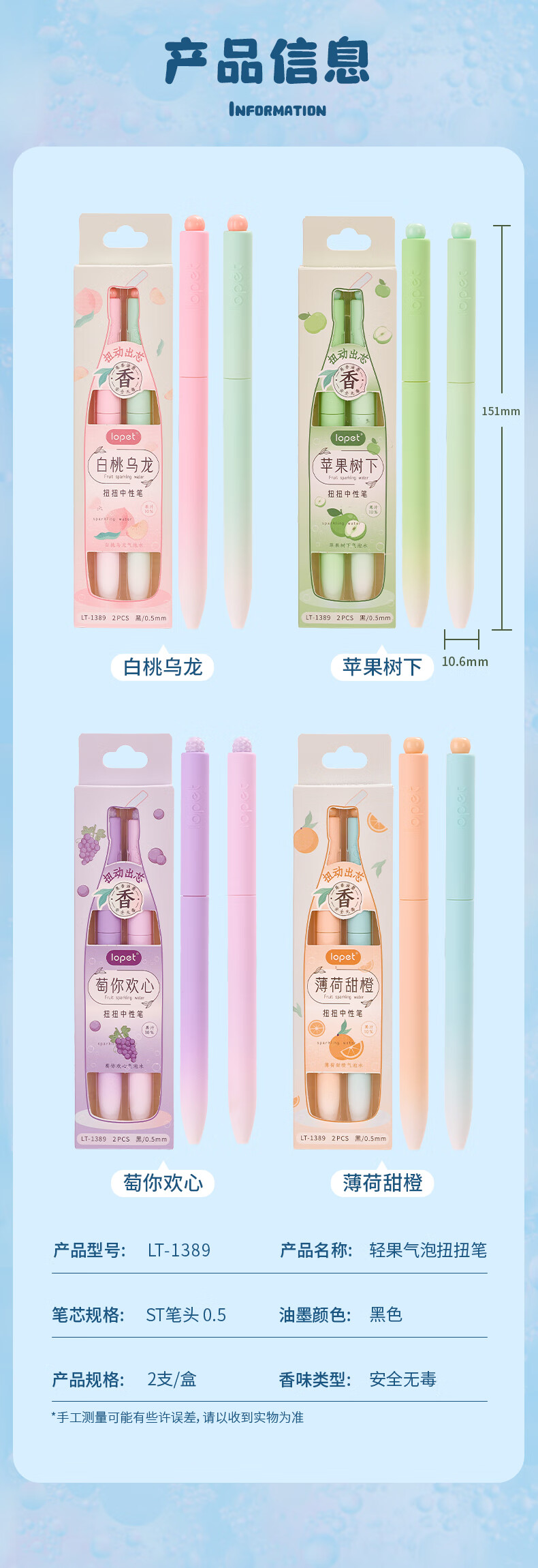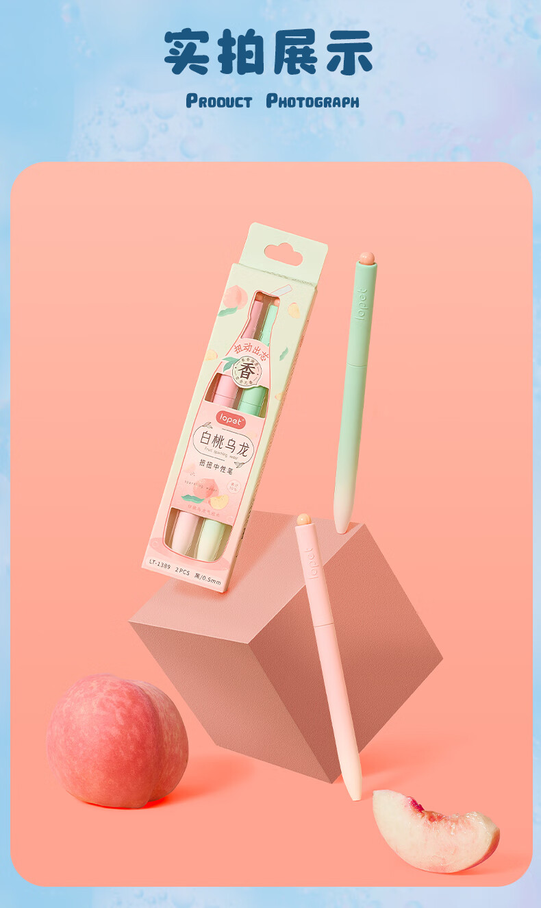 LOPET duftender Gelstift, schnell trocknend, hochwertiger Pinsel, Fragestift, Schüler, Prüfung, Spezial, 0,5, schwarzer Stift, Mittelstufe, Schüler, glattes schwarzes Wasser, Stift, Unterschriftenstift, Kugelschreiber, weißer Pfirsich, Oolong, 2 Stück LT-1389