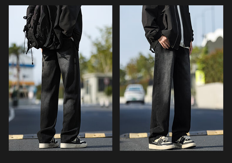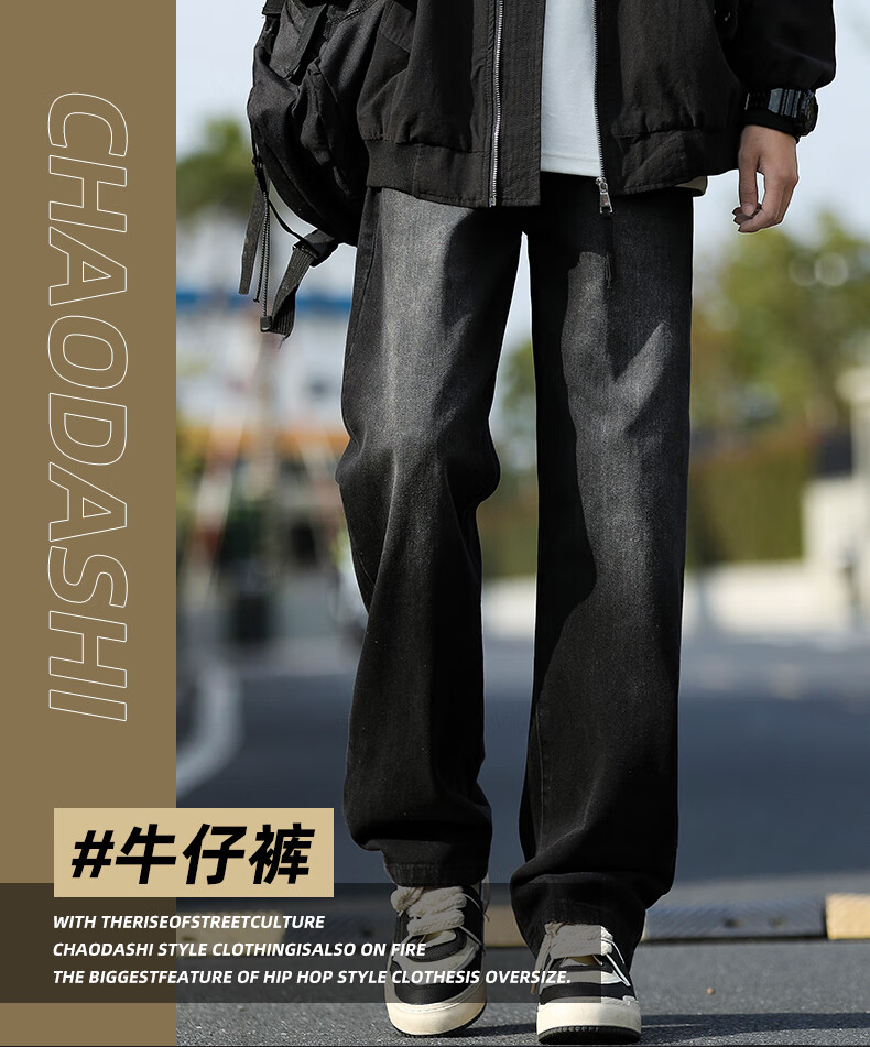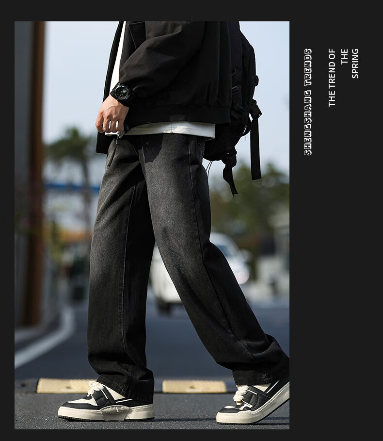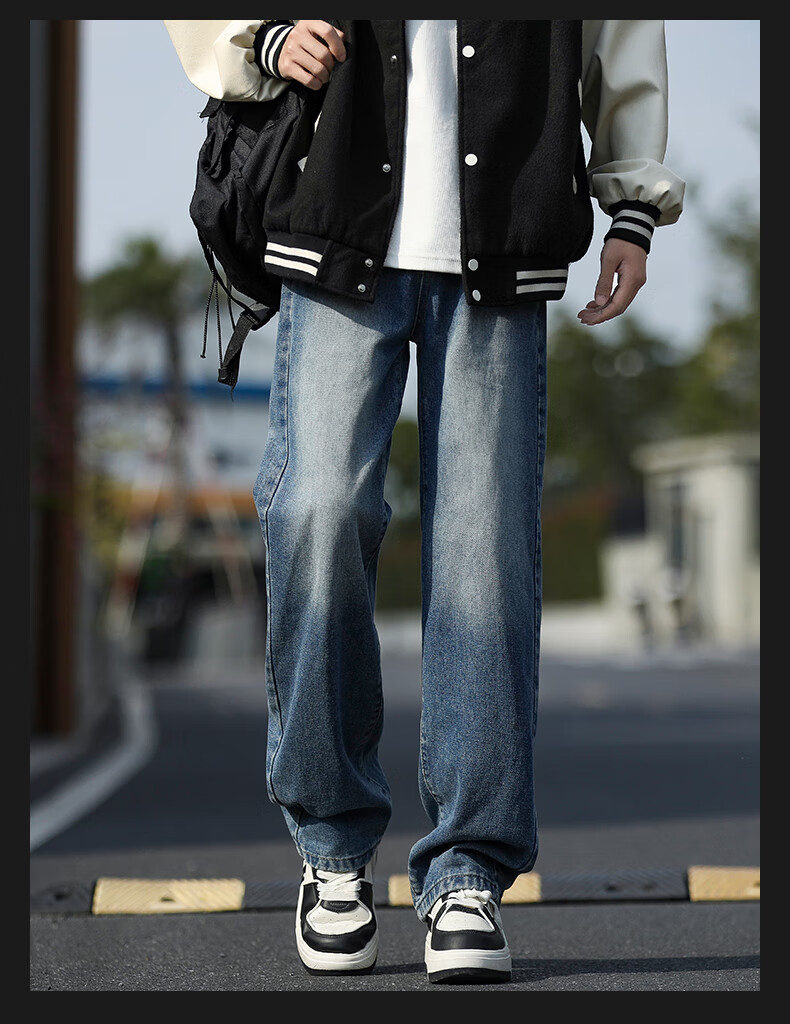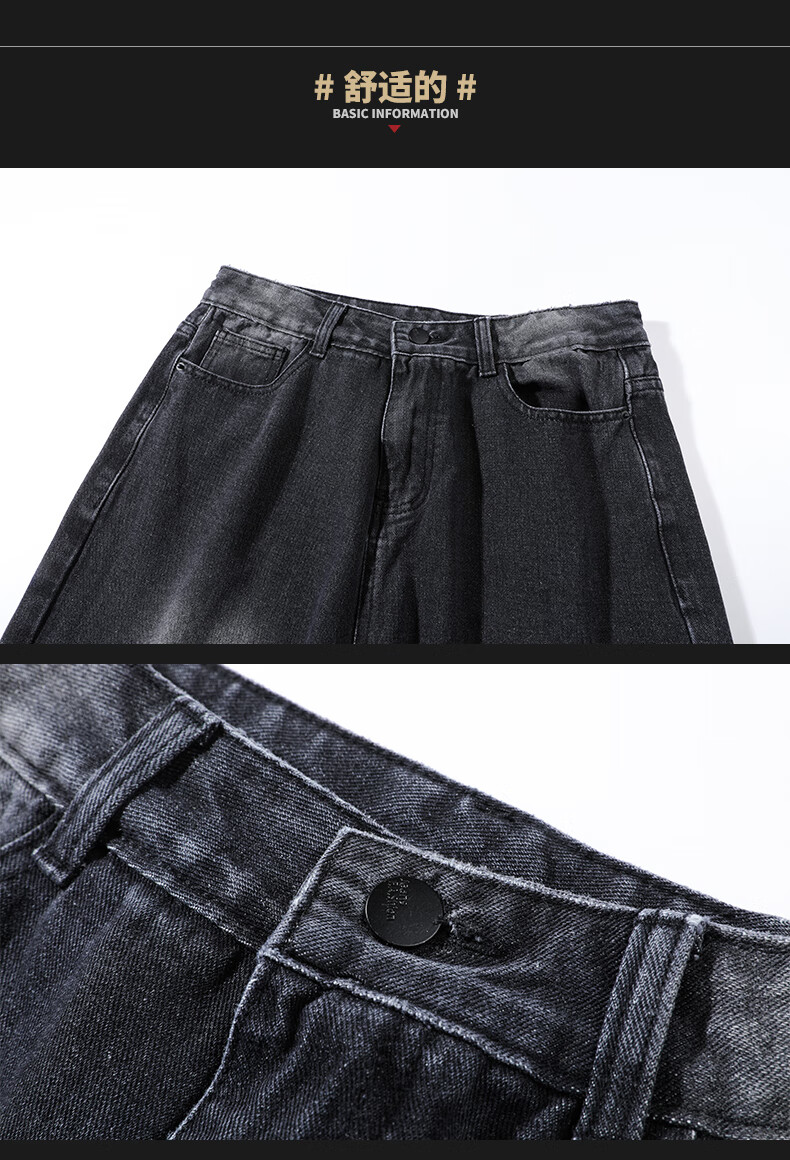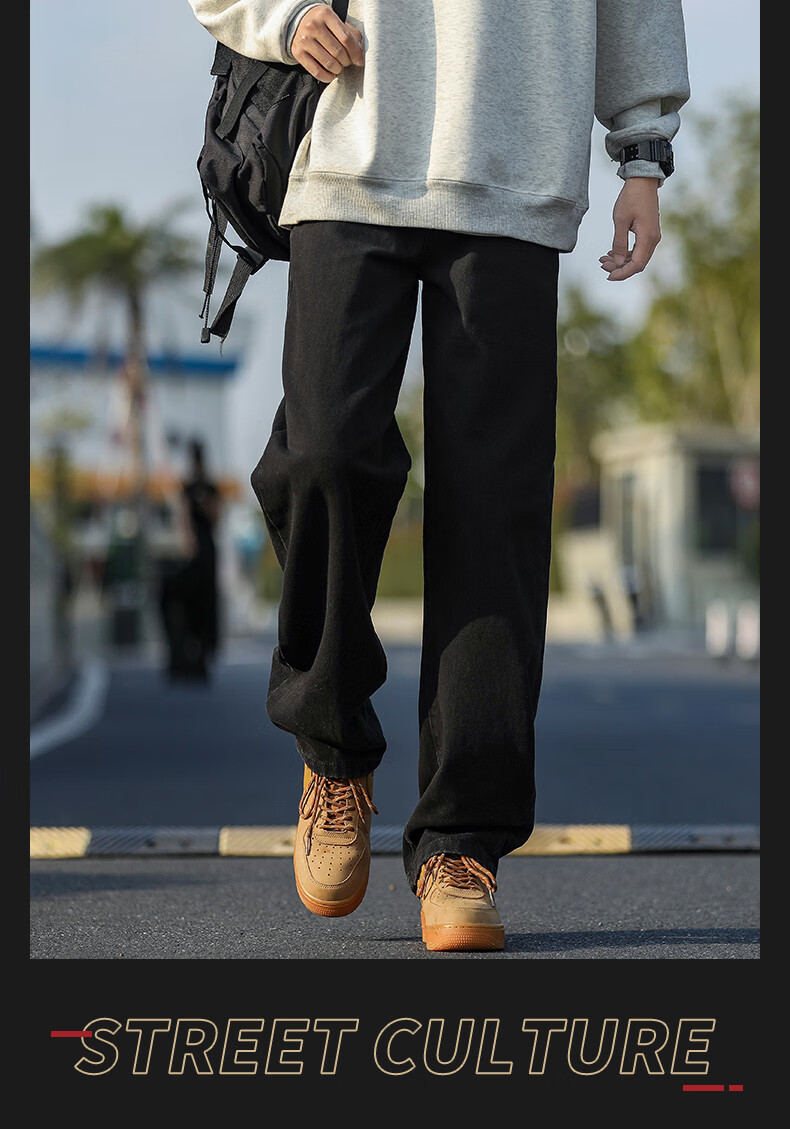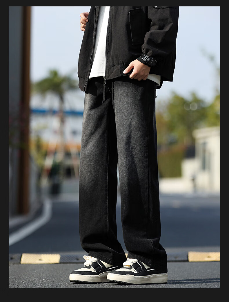 MAYBEYOND Jeans Herren Herbst und Winter lose gerade Hosen Herren amerikanische lässige Hose mit weitem Bein MA74 schwarz grau L