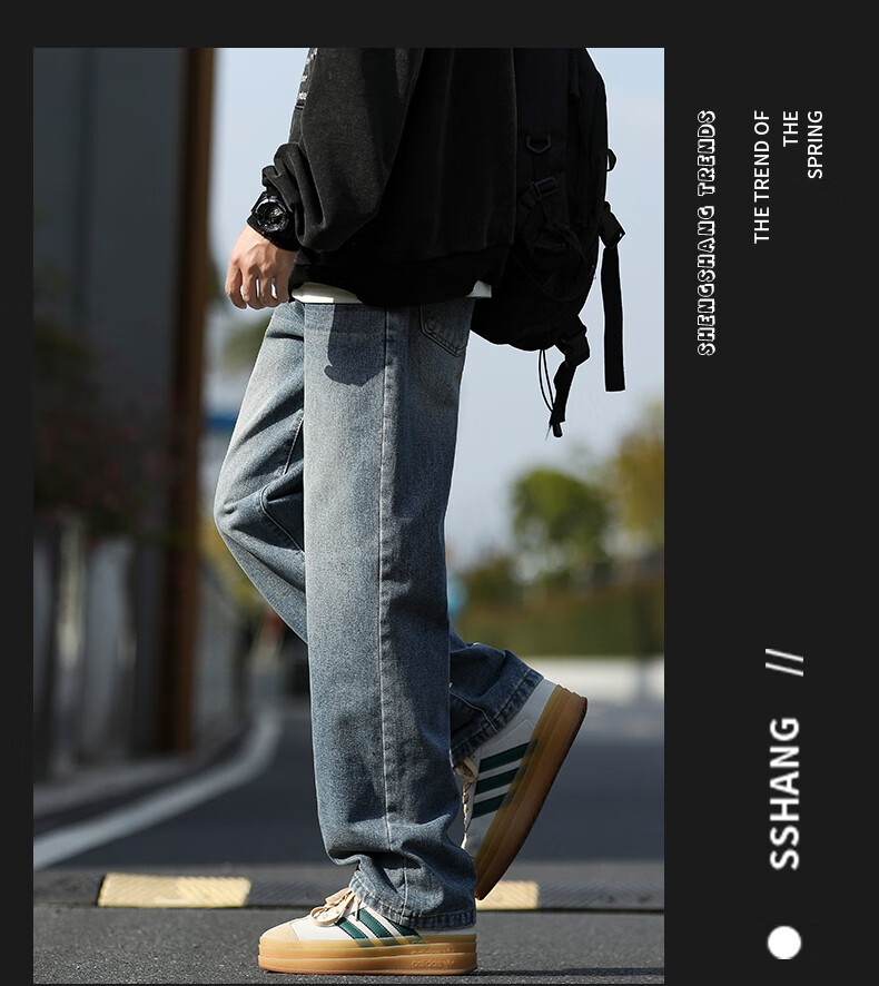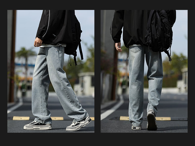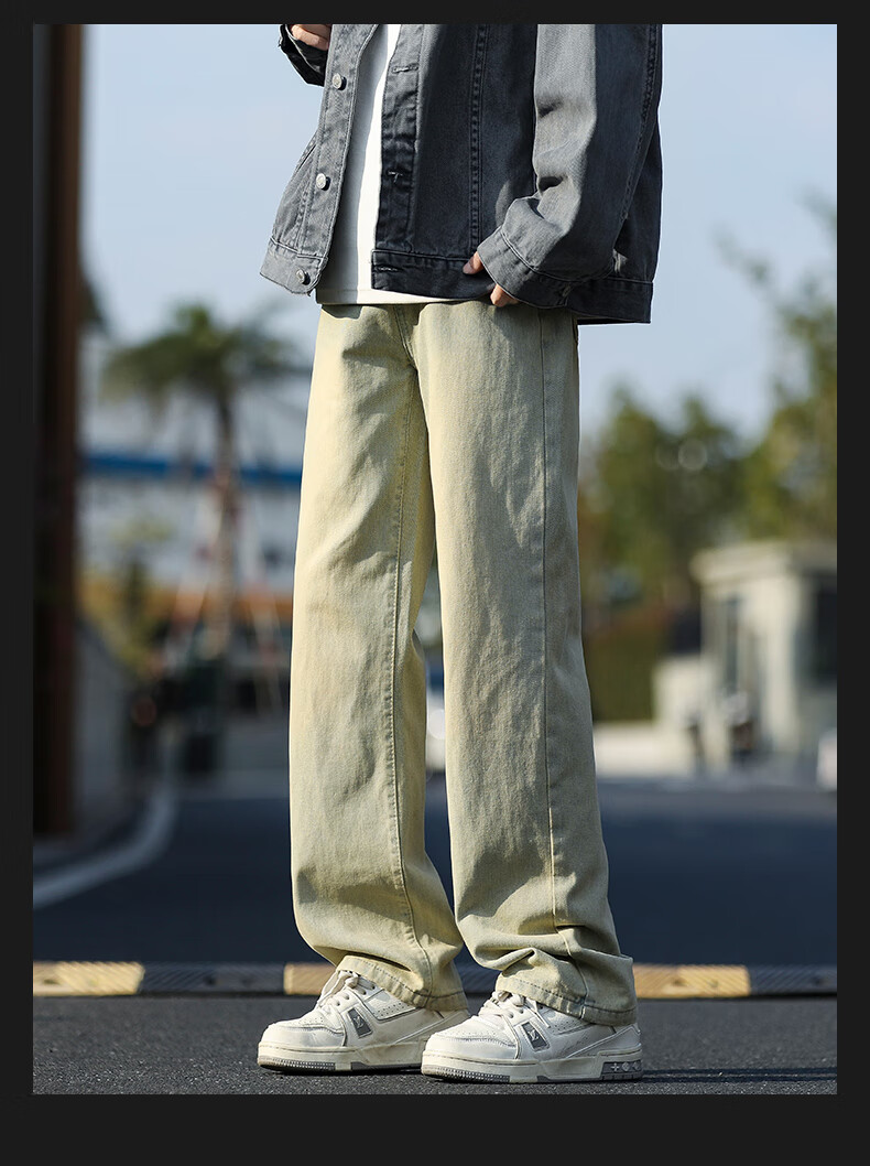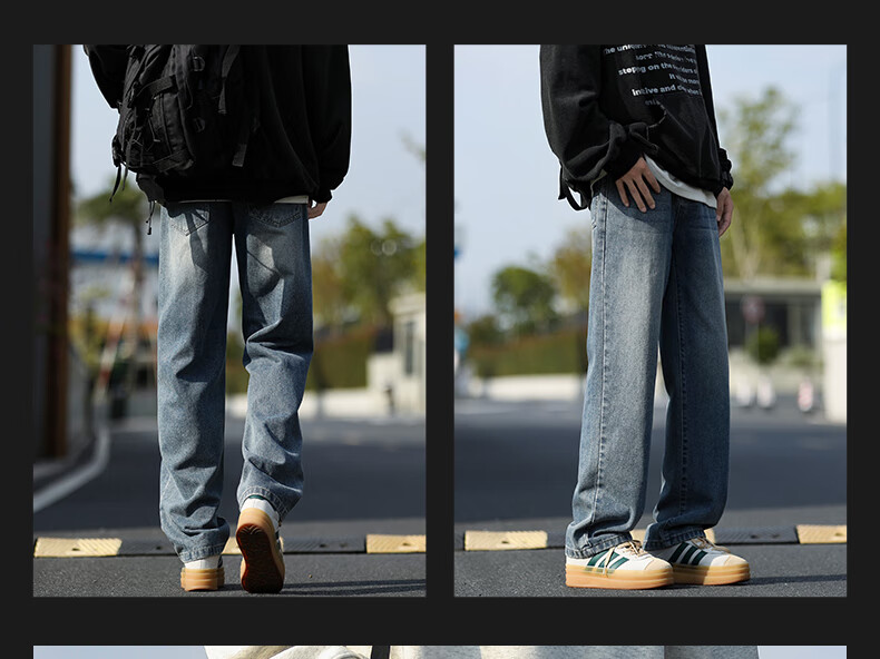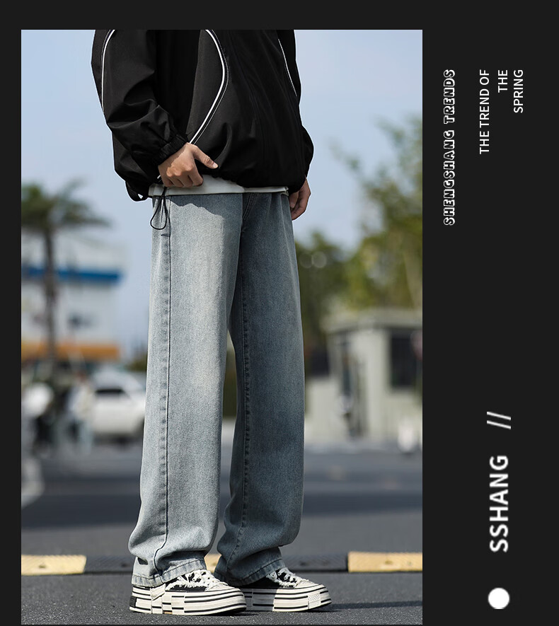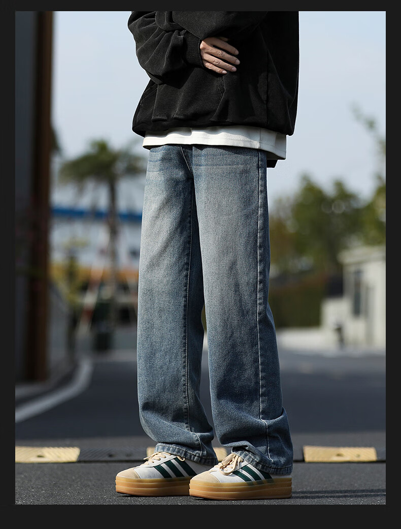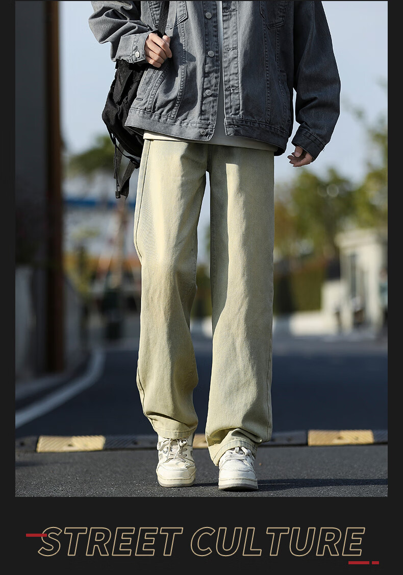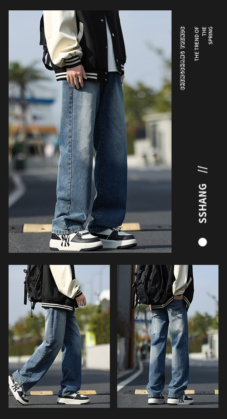 MAYBEYOND Jeans Herren Herbst und Winter lose gerade Hosen Herren amerikanische lässige Hose mit weitem Bein MA74 schwarz grau L