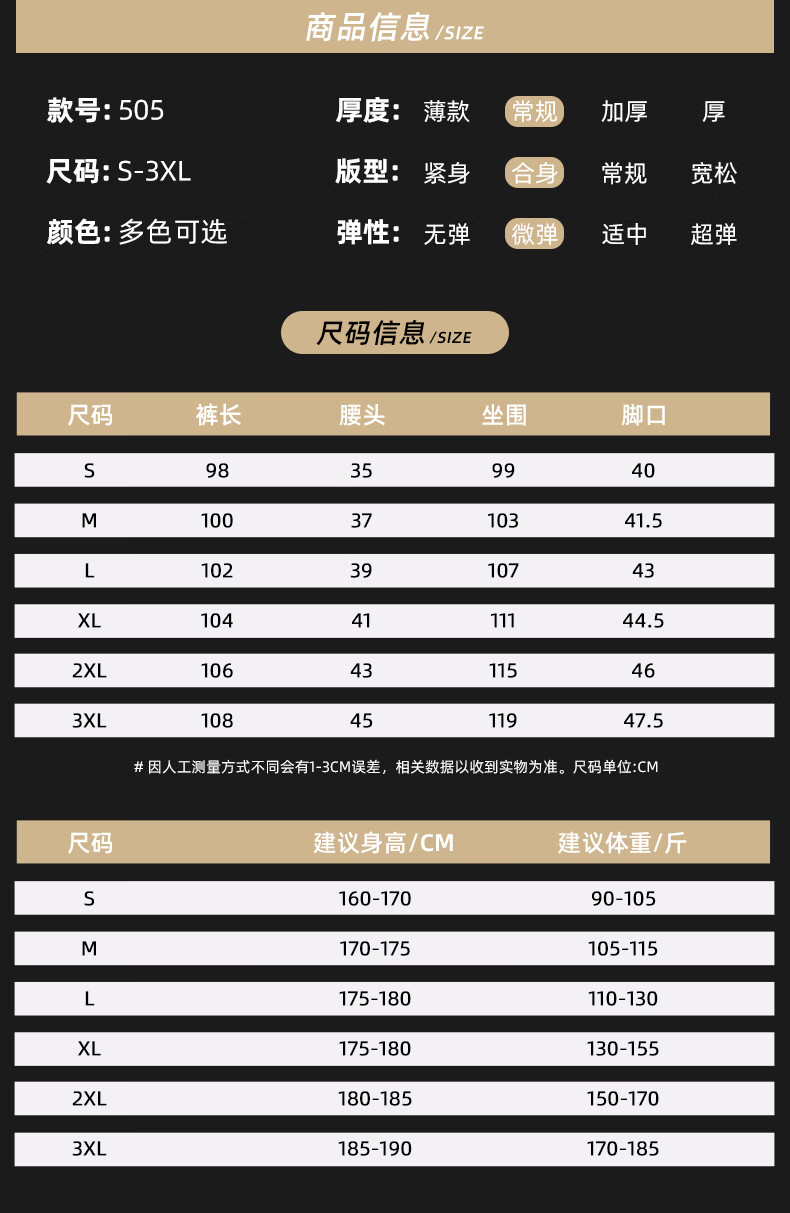 Outseam (cm) 99 cm 101.5 cm 104 cm 106.5 cm 109 cm
