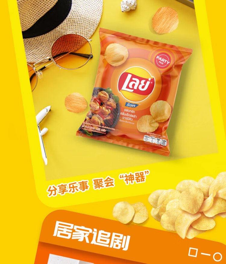 Lay's BBQ Flavor Potato Chips Snack Food Puffed Food Imported from Thailand 105g