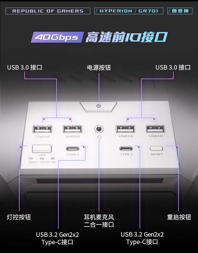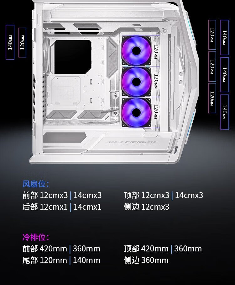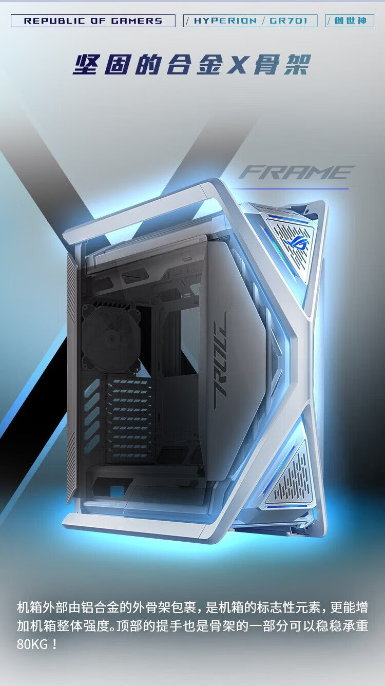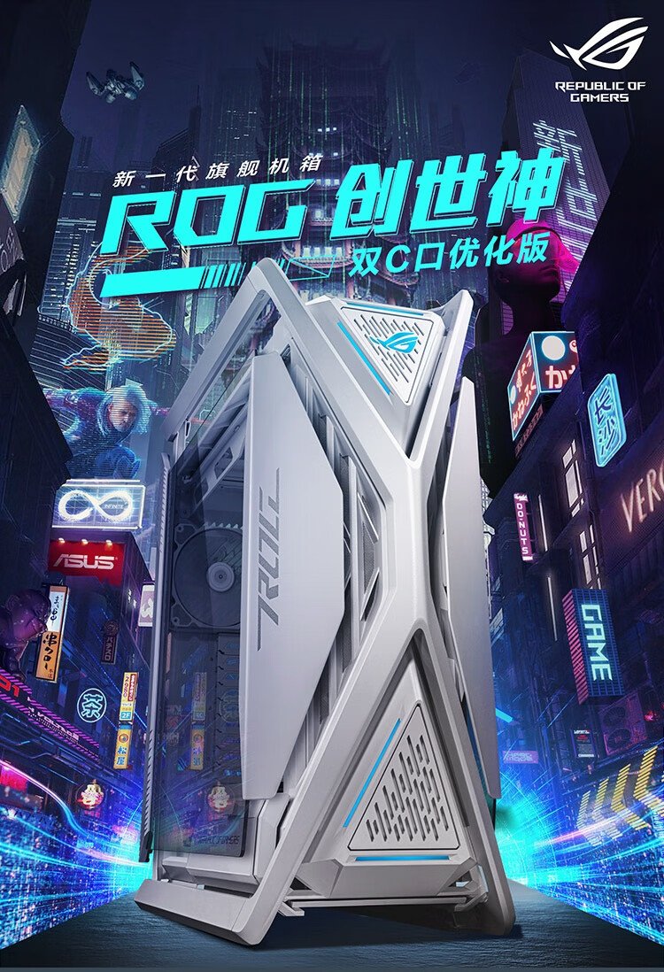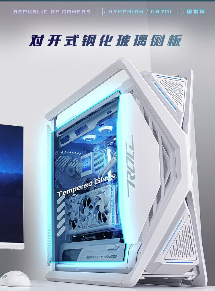 ASUS ROG HYPERION GR701 weißes Genesis-Gehäuse, optimierte Dual-C-Port-Version, kompatibel mit Motherboards der ROG MAXIMUS 800-Serie/unterstützt EATX-Motherboards