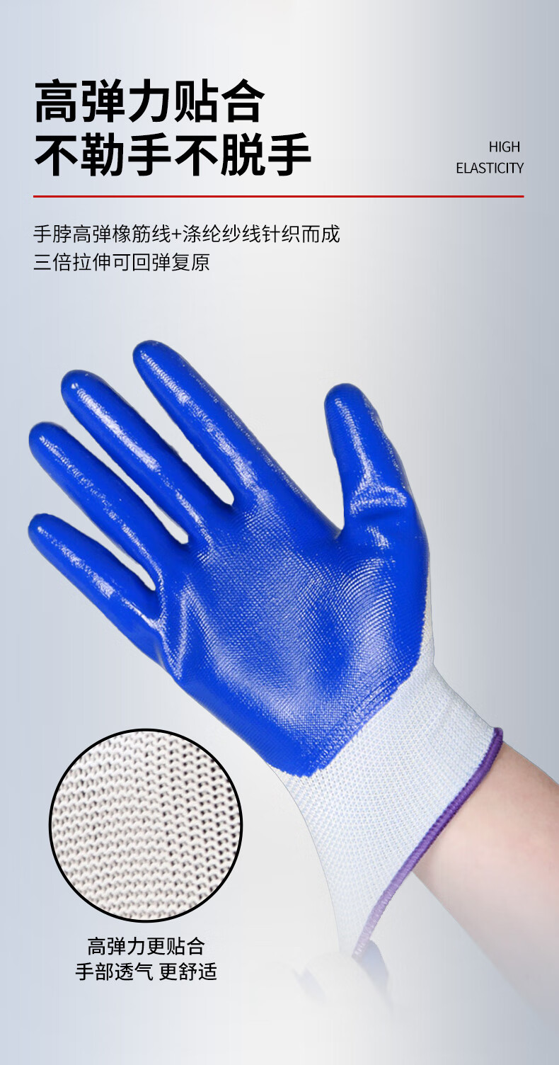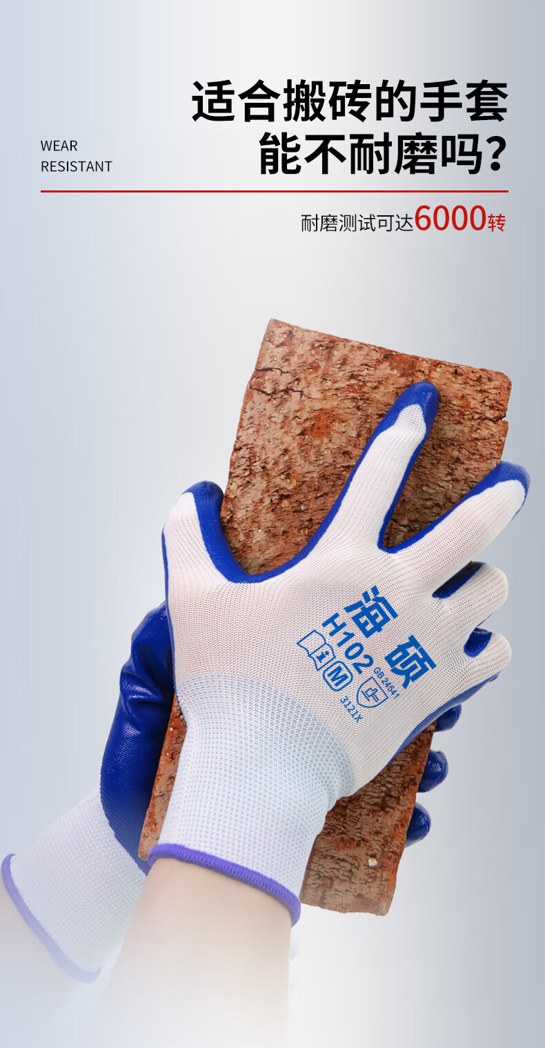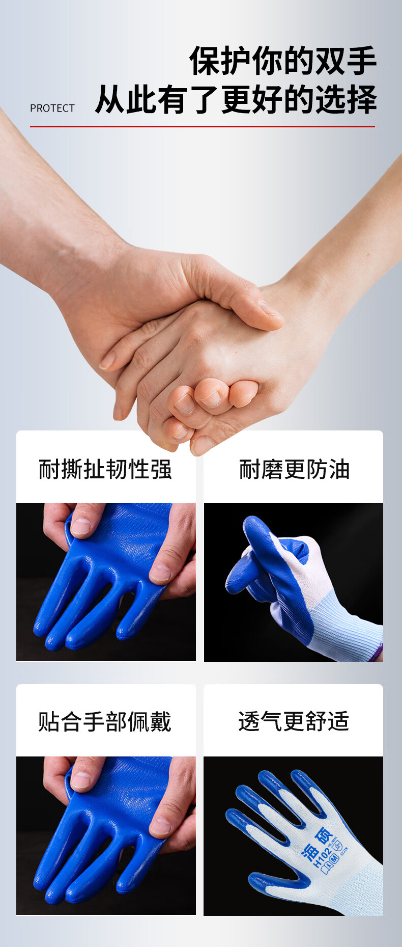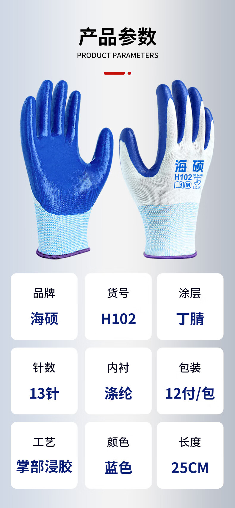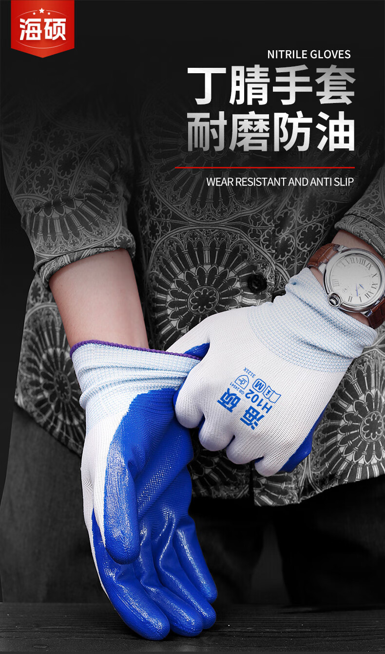 海硕浸胶劳保手套丁腈橡胶耐油防水工地耐磨工作胶皮防护H102【正品行货】