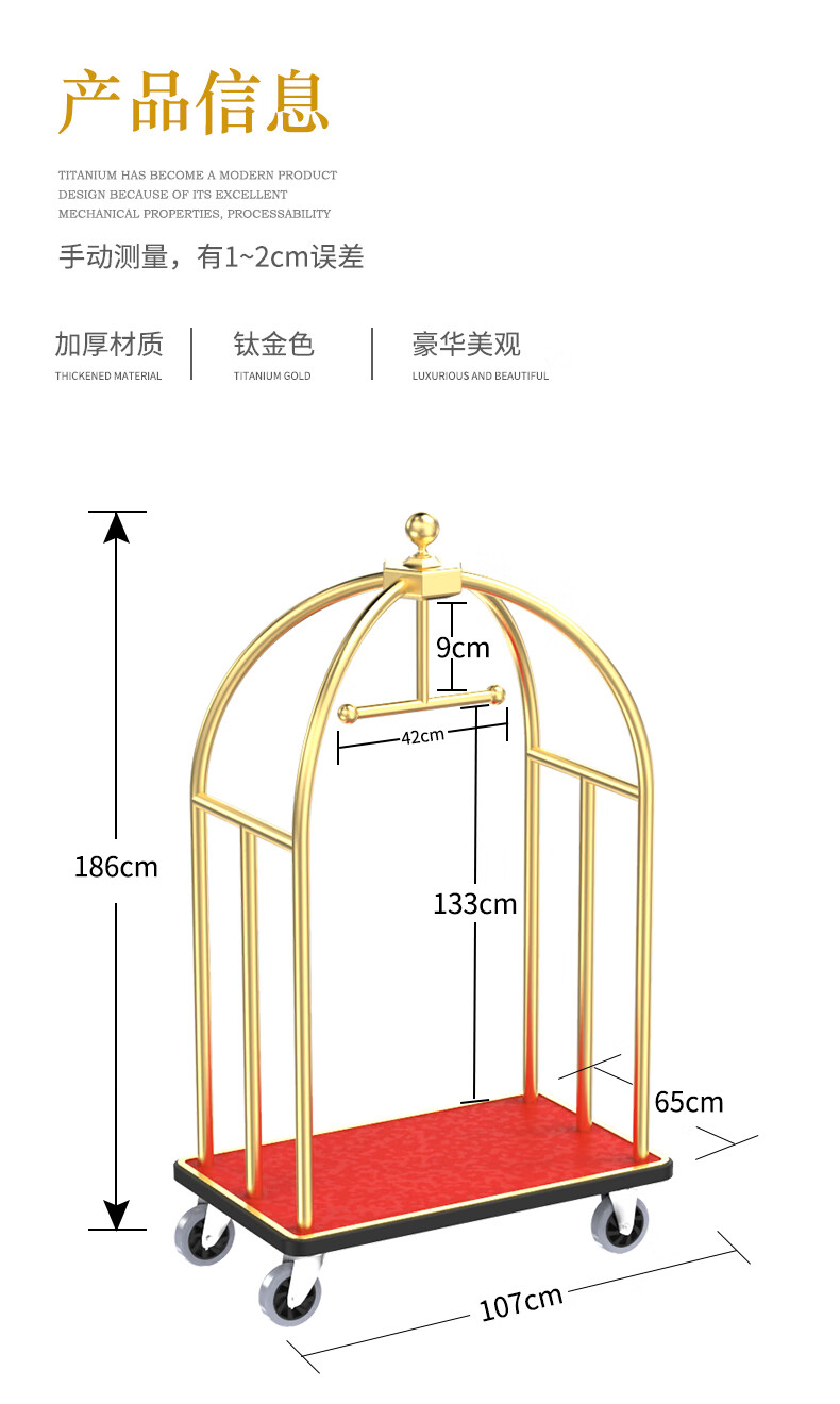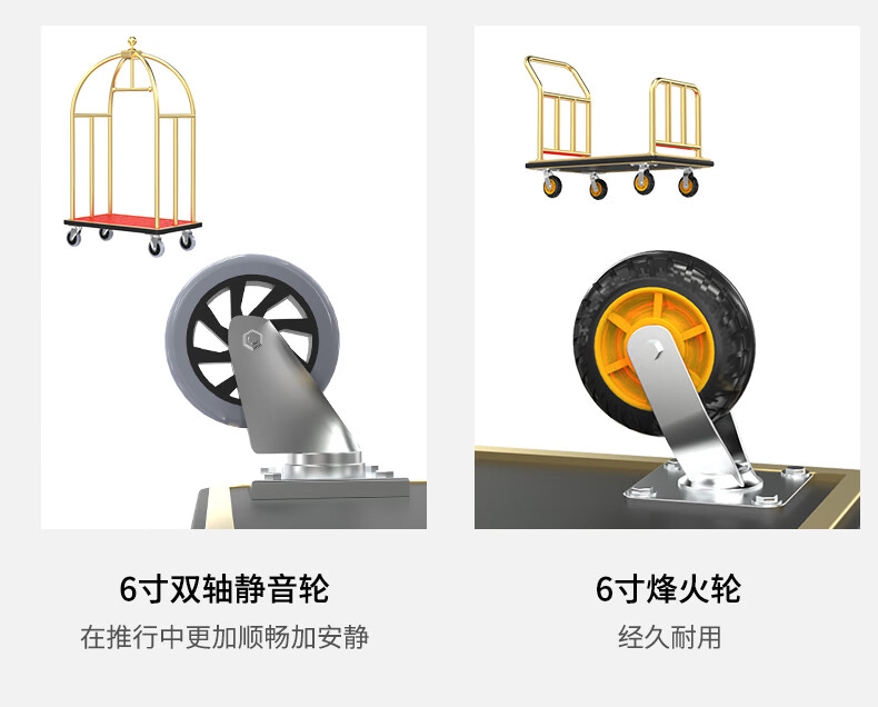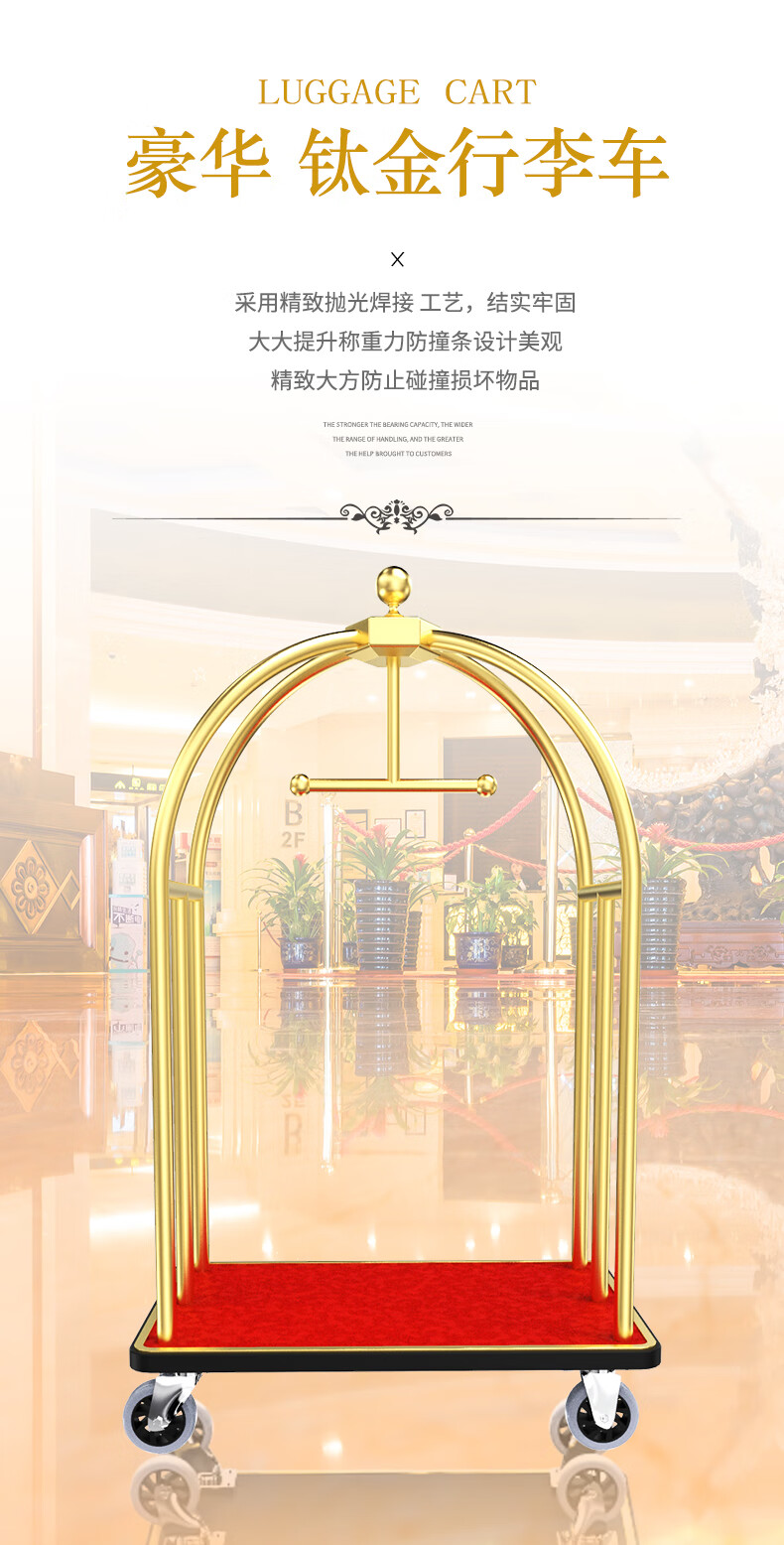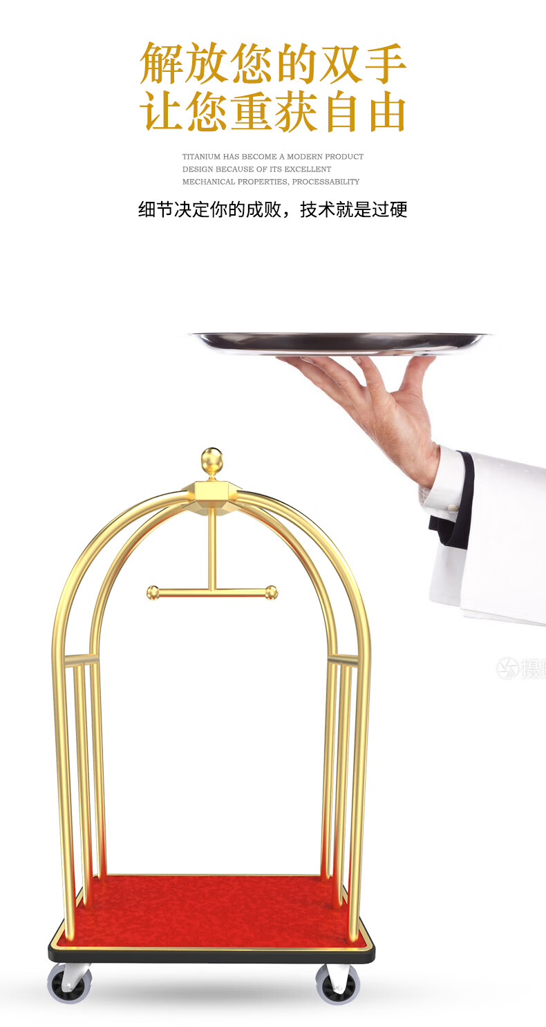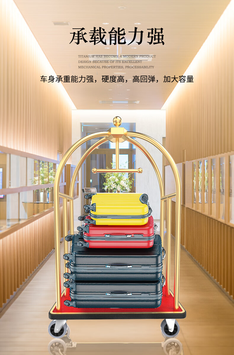 温沁 酒店行李车手推平板车不锈钢礼宾大堂婚纱店加厚手拉箱包车推车