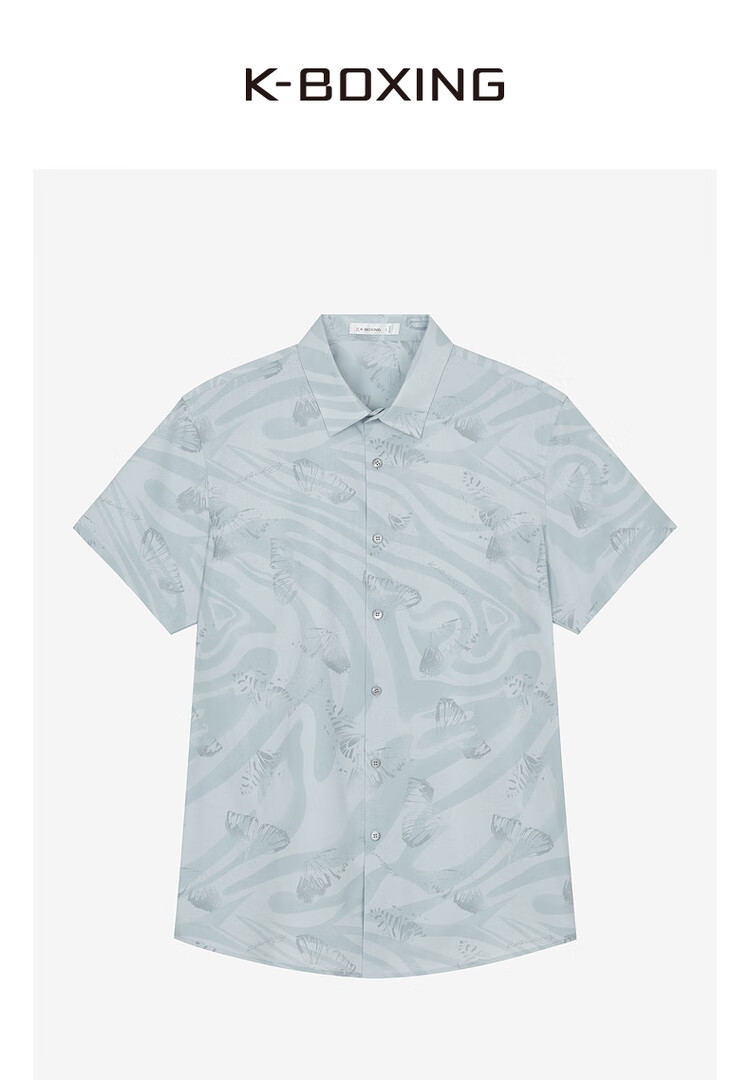 K-Boxing K-Boxing K-Boxing Men's Spring and Summer Fashion Art Geometric Print Short-Sleeved Shirt FDCE2906 Medium Stone Gray 2XL