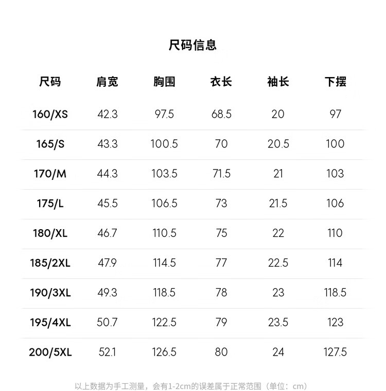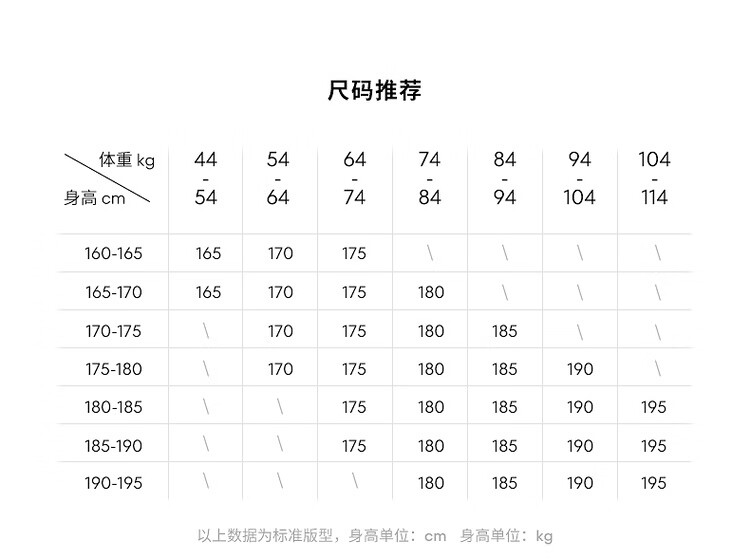 China (cm) 160-165/84-86 165-170 / 88-90 167-172 / 92-96 168-173 / 98-102 170-176 / 106-110