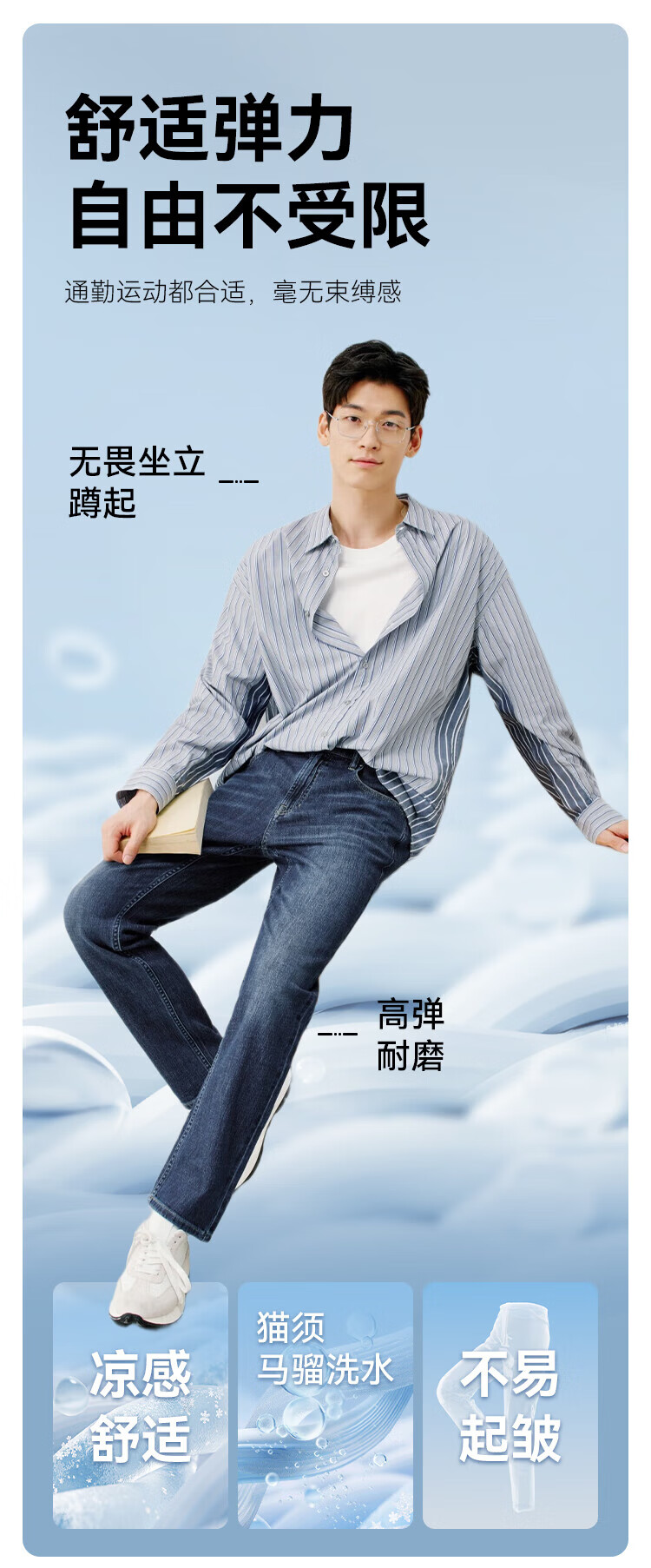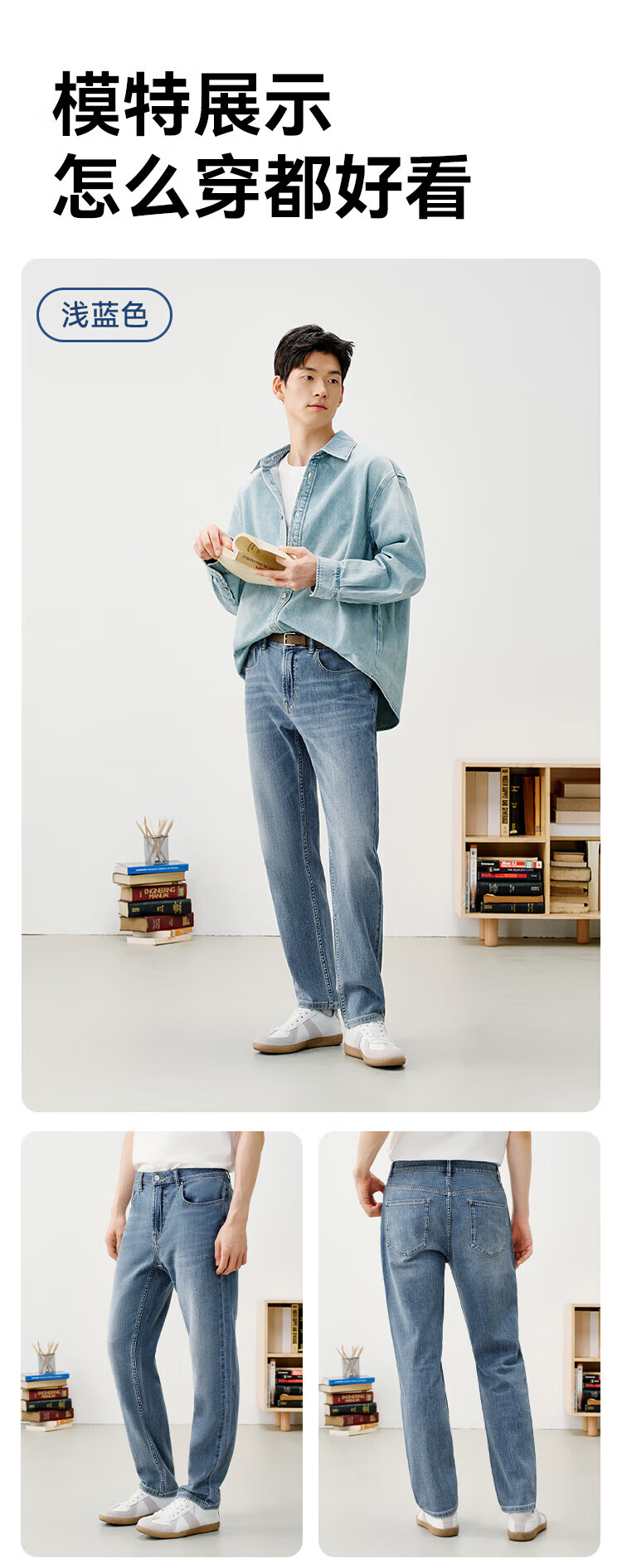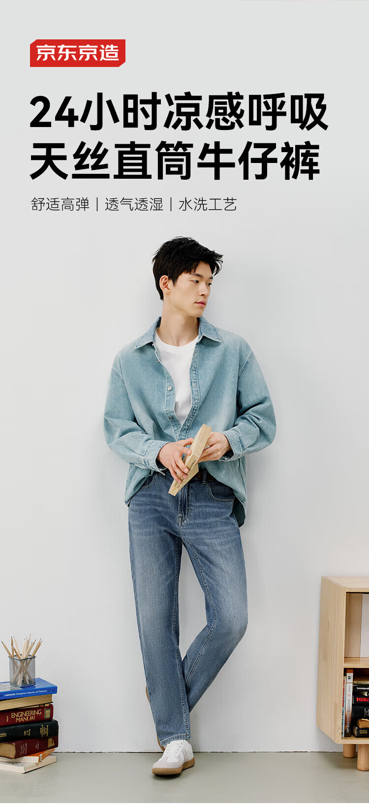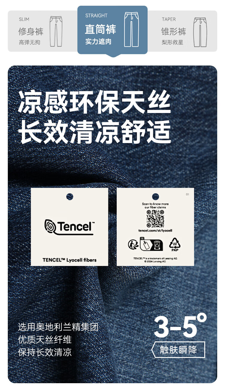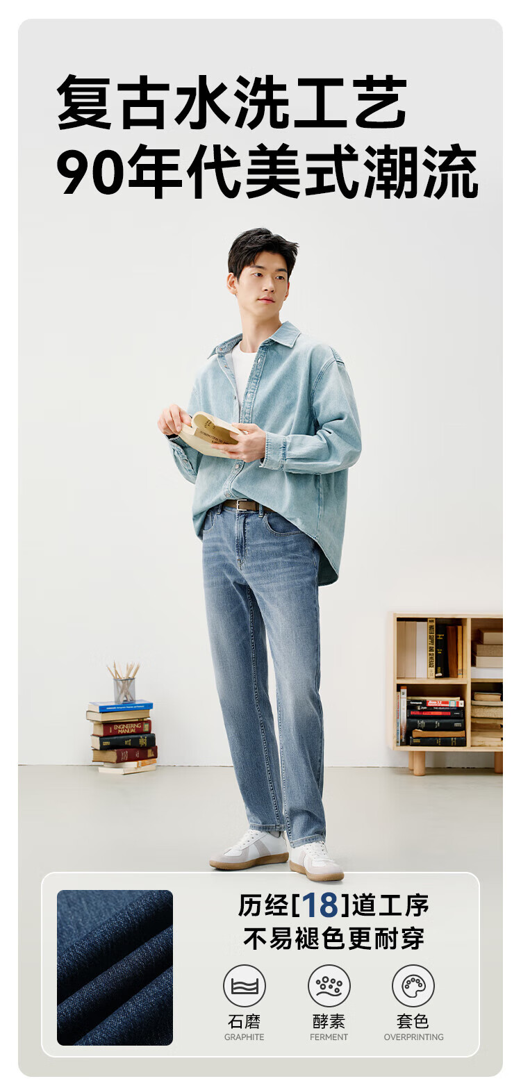 Jing Tokyo Ice Silk Jeans Men's Thin Loose Tencel Straight Pants 25 New Casual Long Pants Light Blue 33