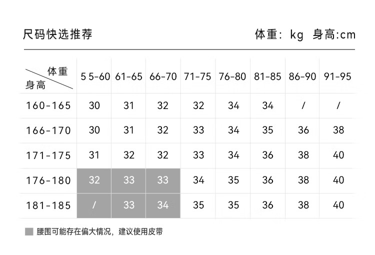 China (cm) 160-165/84-86 165-170 / 88-90 167-172 / 92-96 168-173 / 98-102 170-176 / 106-110