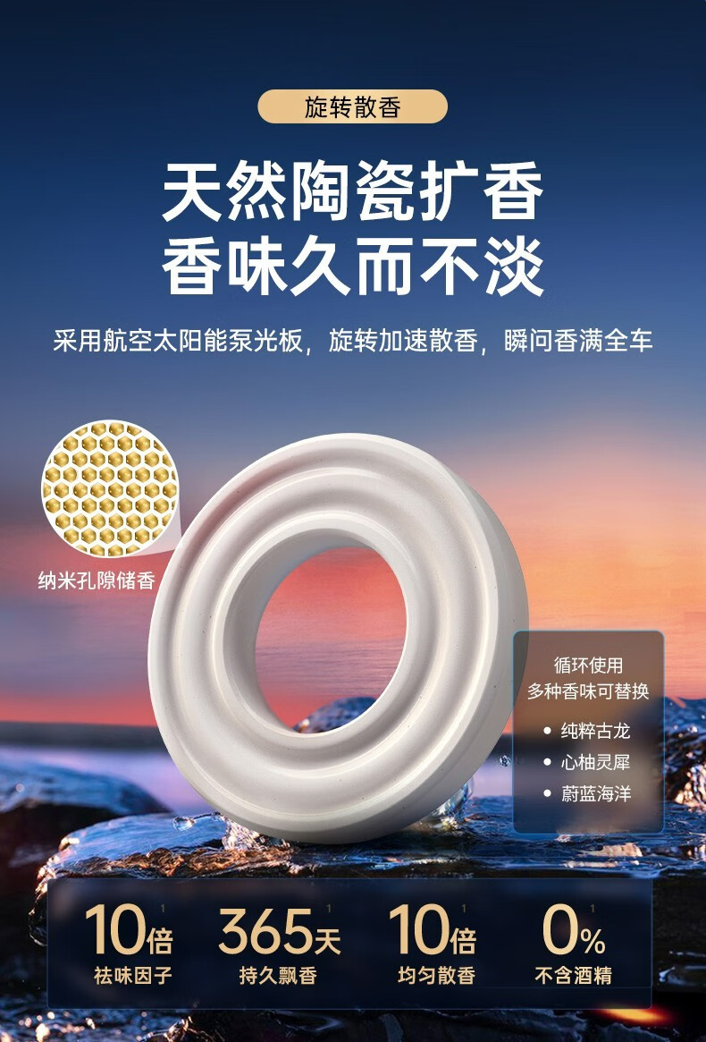 西尼优(CEENIU)【顶配太阳能】车载香薰汽车香水内用古龙香氛除醛异味男女士专用