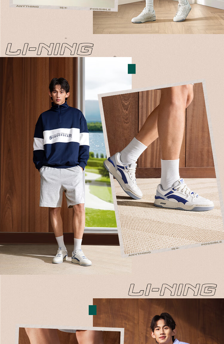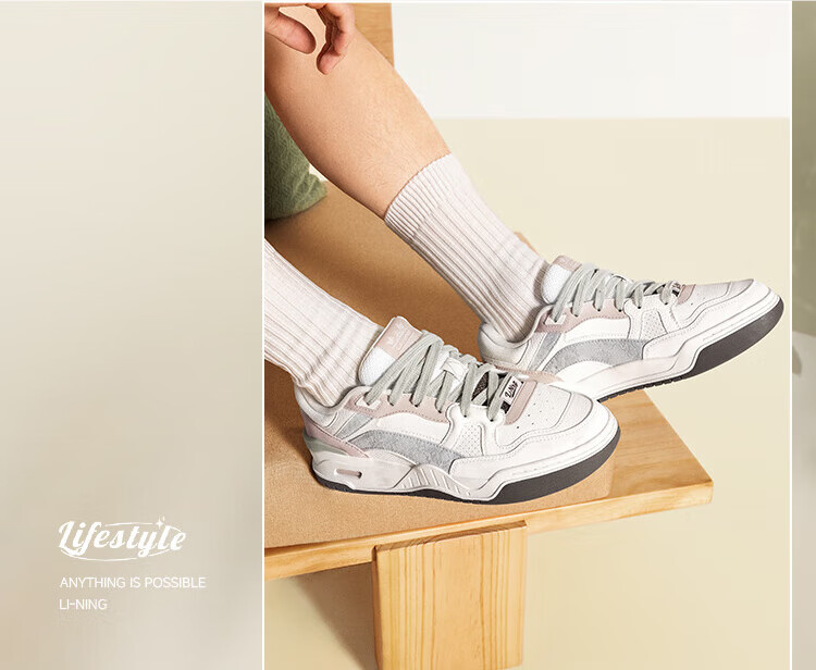 李宁月白2.0牛仔布拼接丨板鞋男鞋撞色舒适增高休闲鞋AGCU275