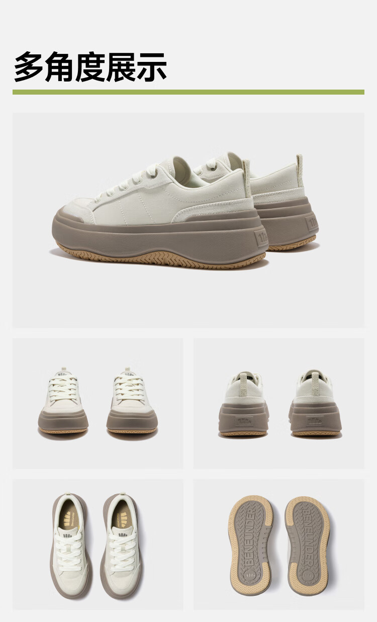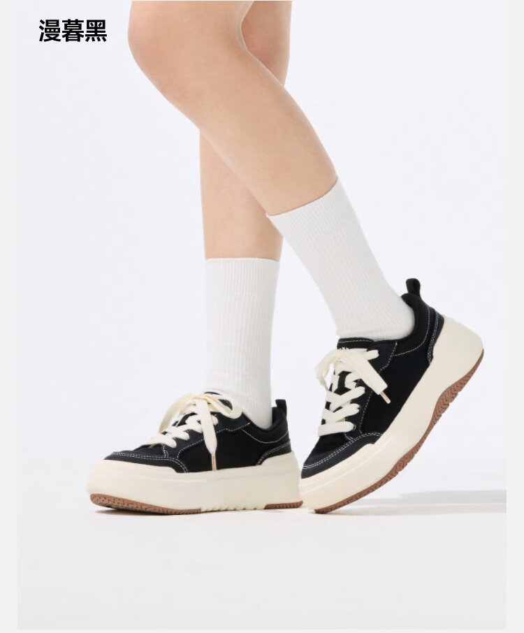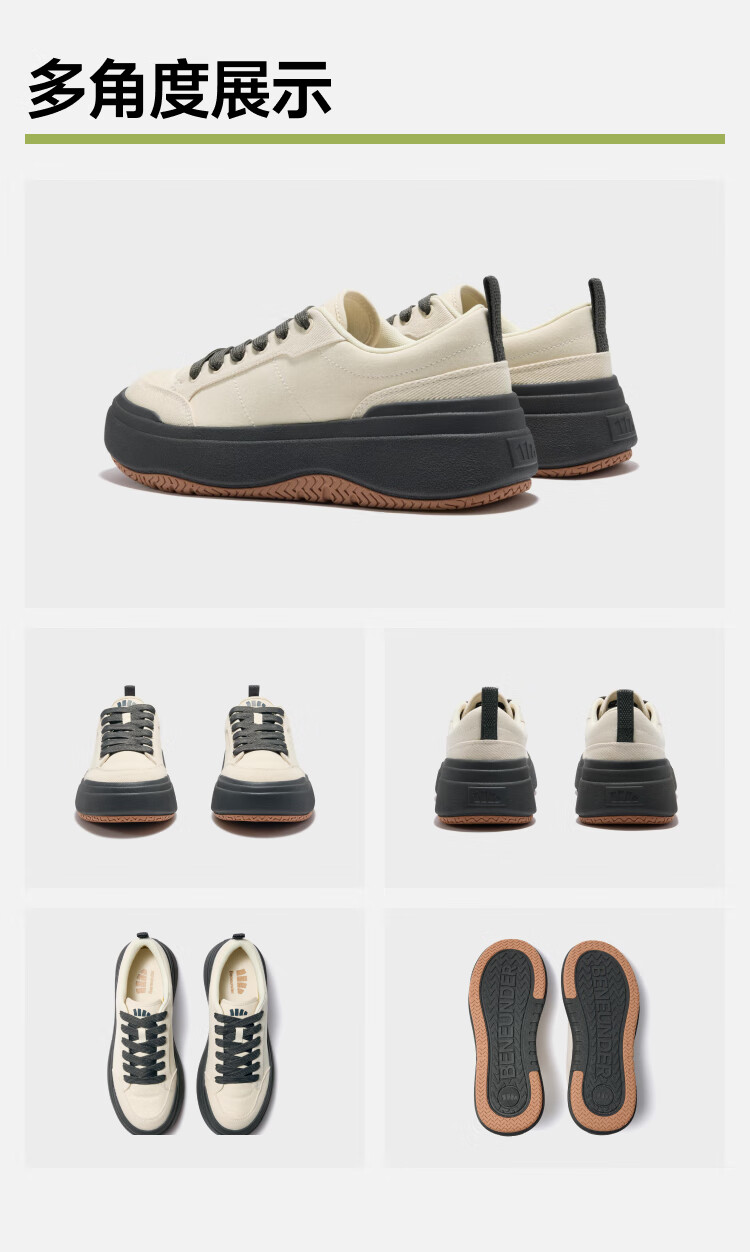 Beneunder canvas shoes women's thick-soled sneakers four seasons cloud shoes small white shoes heightening dusk black CW695