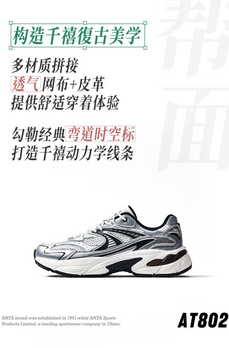 Anta AT802 Retro-Laufschuhe, Freizeitschuhe, Herrenschuhe, dämpfend, trendig und vielseitig, neue Paar-Vater-Schuhe mit dicken Sohlen, Sneakers