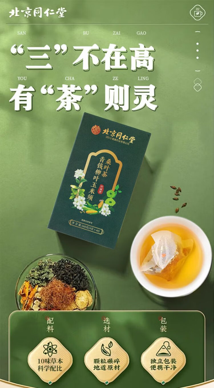 朕皇北京同仁堂青钱柳玉米须桑叶茶霜后桑叶办公室双降养生茶160g/盒