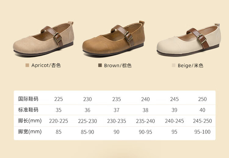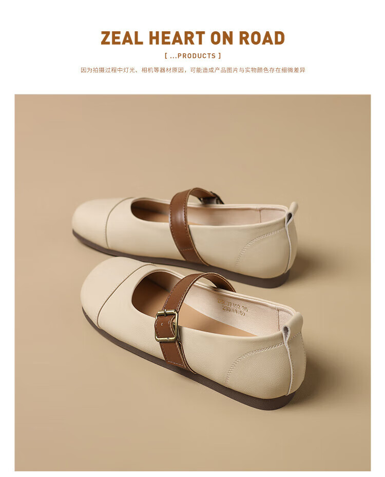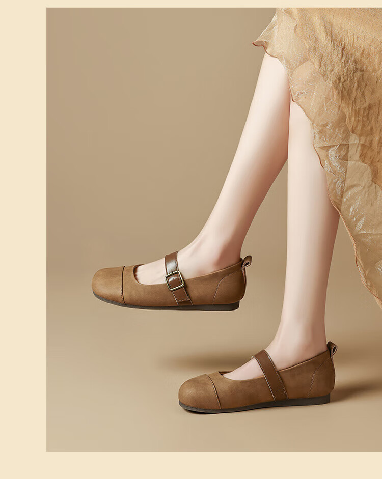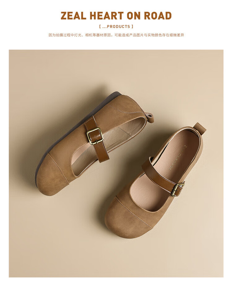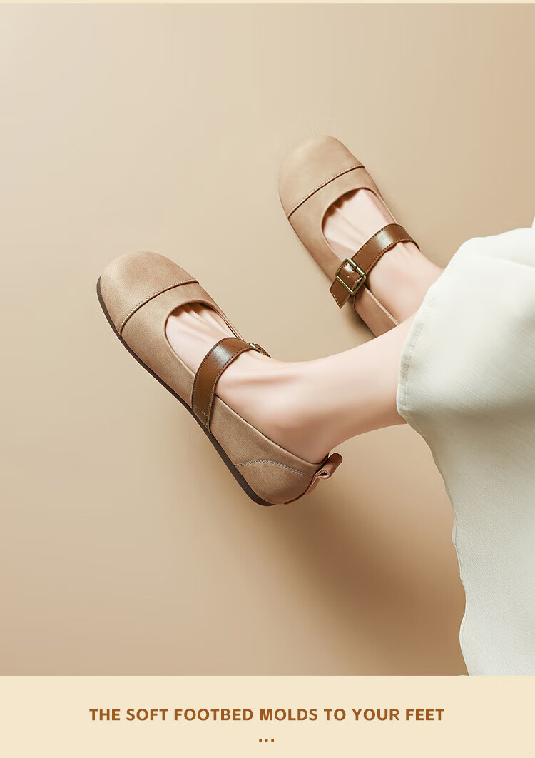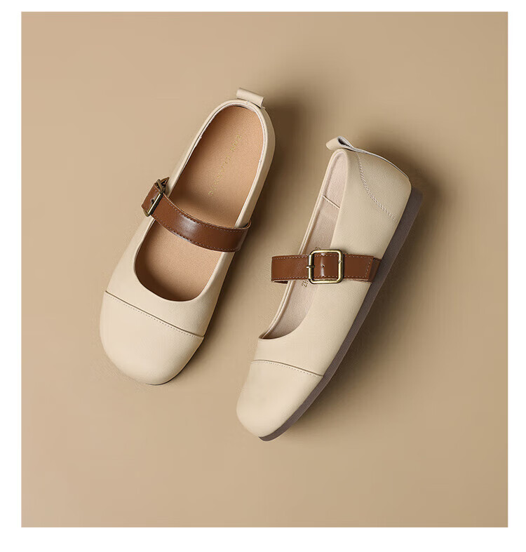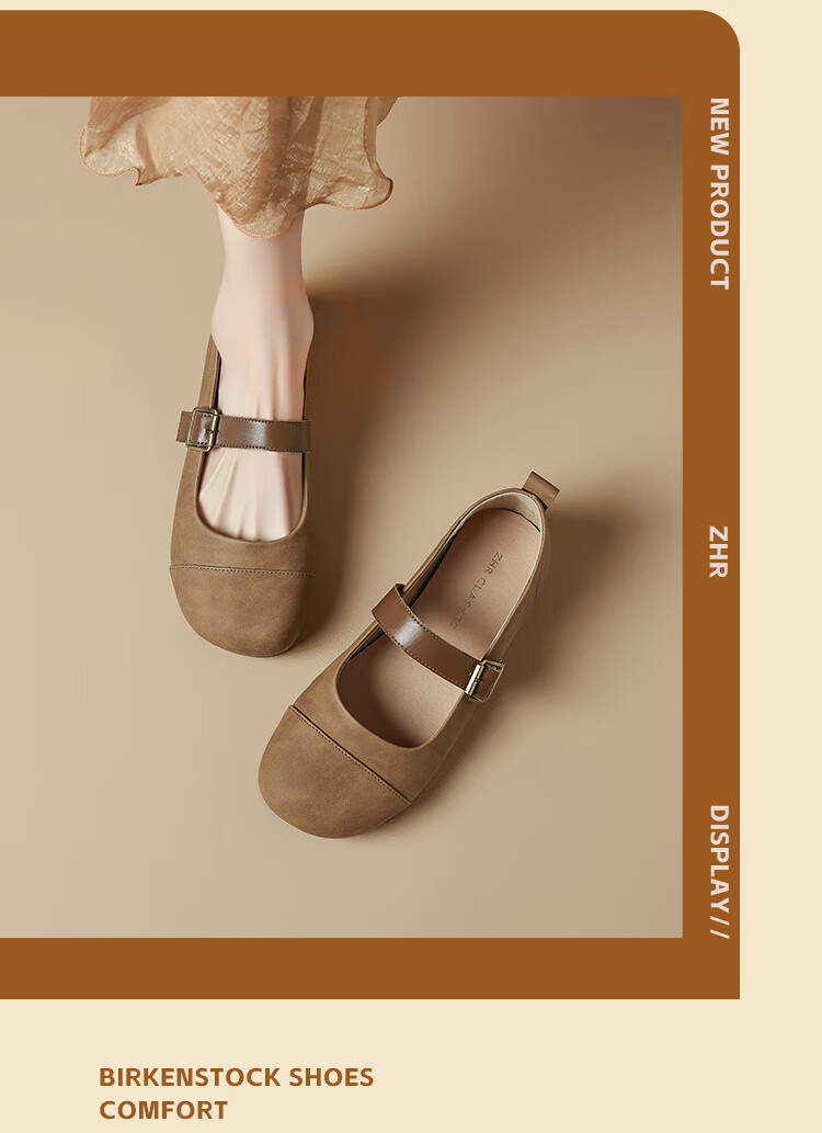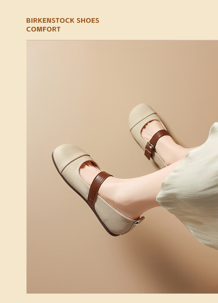 ZHR single shoes for women retro round toe flat bottom Birkenstock Mary Jane women's shoes versatile soft leather shoes for women JF152 apricot 37
