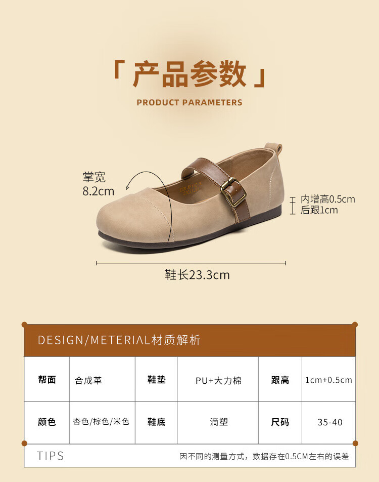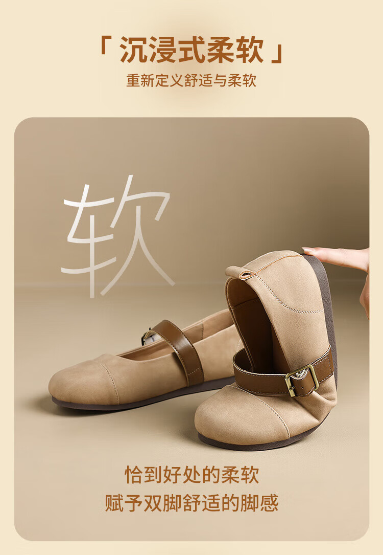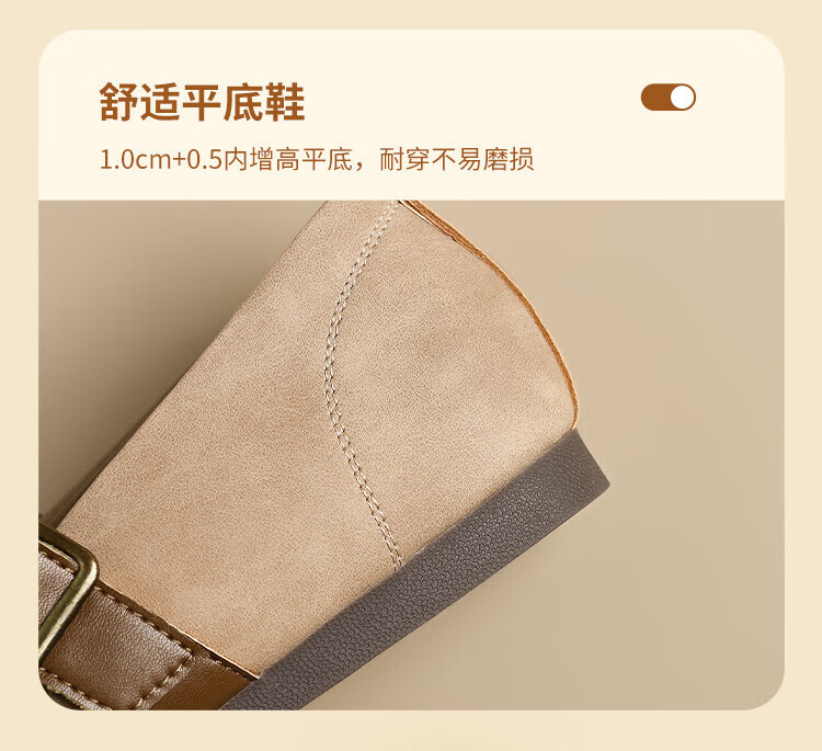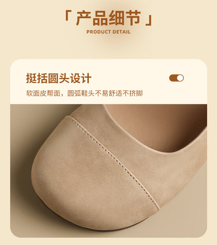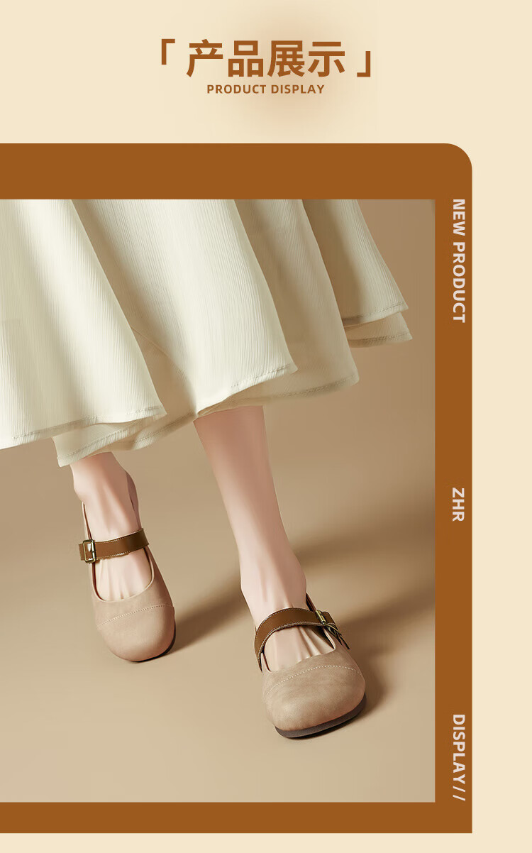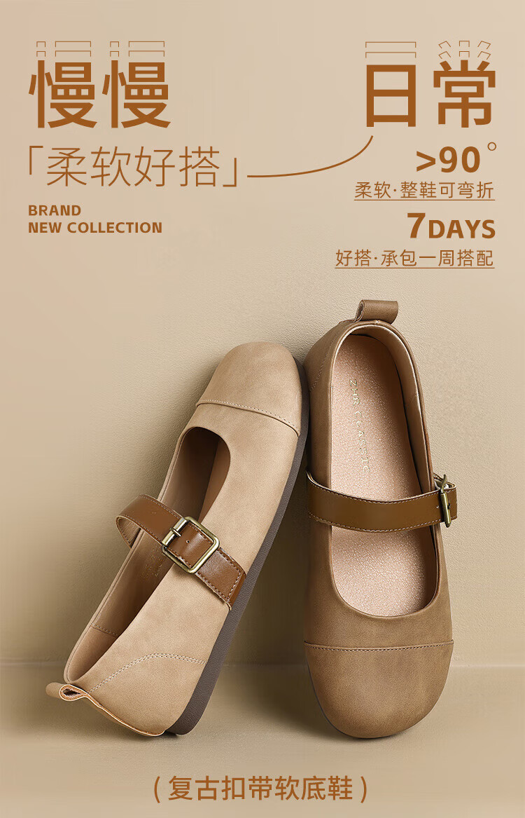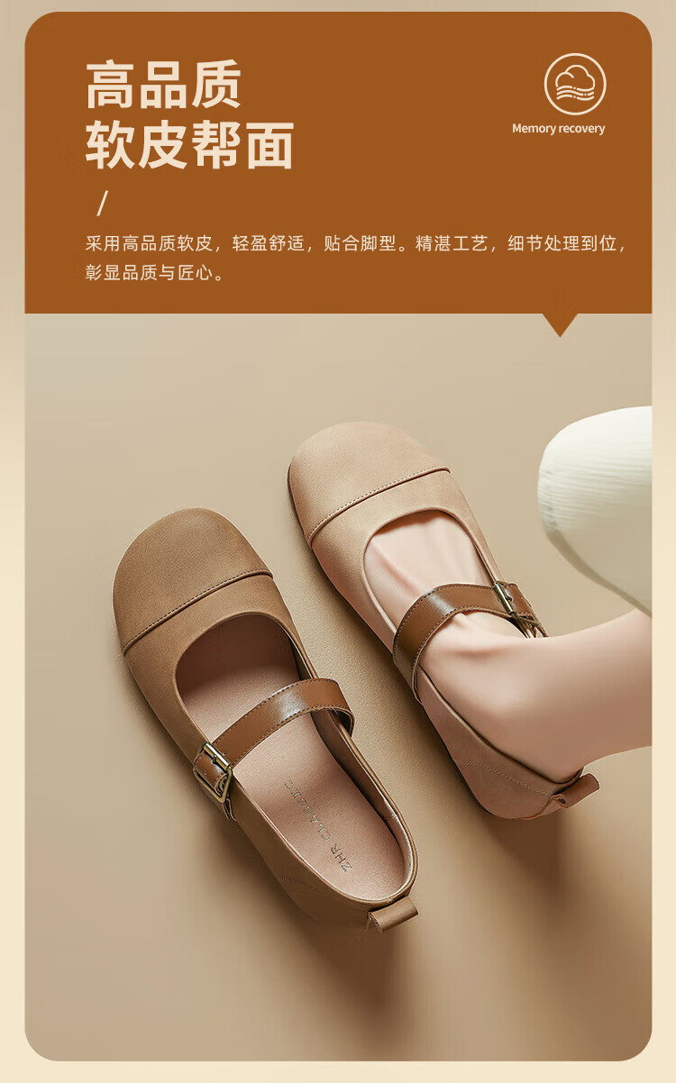 ZHR single shoes for women retro round toe flat bottom Birkenstock Mary Jane women's shoes versatile soft leather shoes for women JF152 apricot 37
