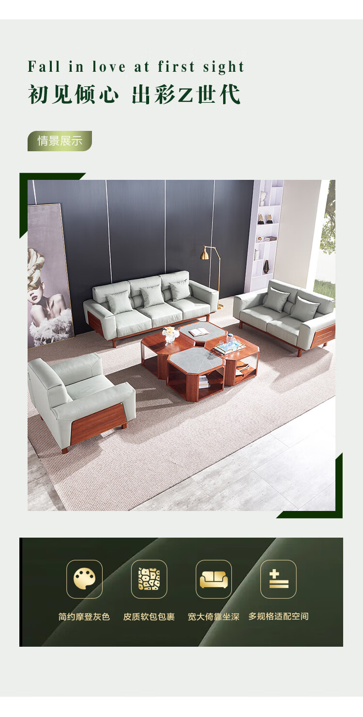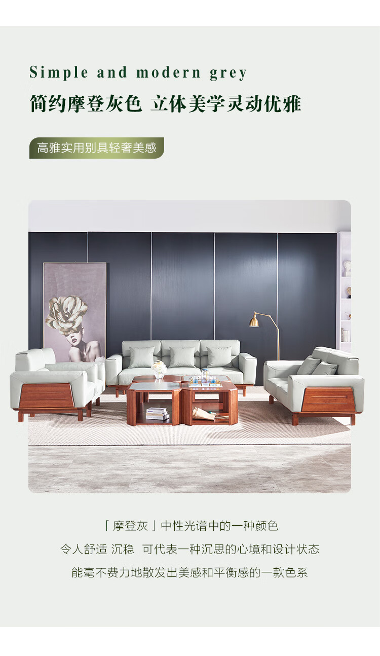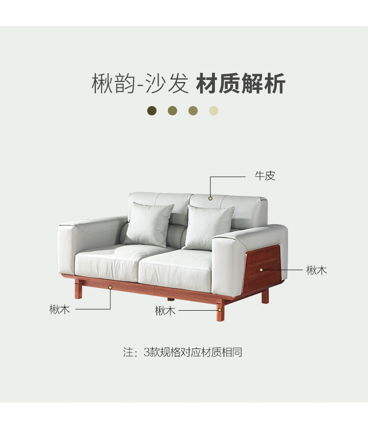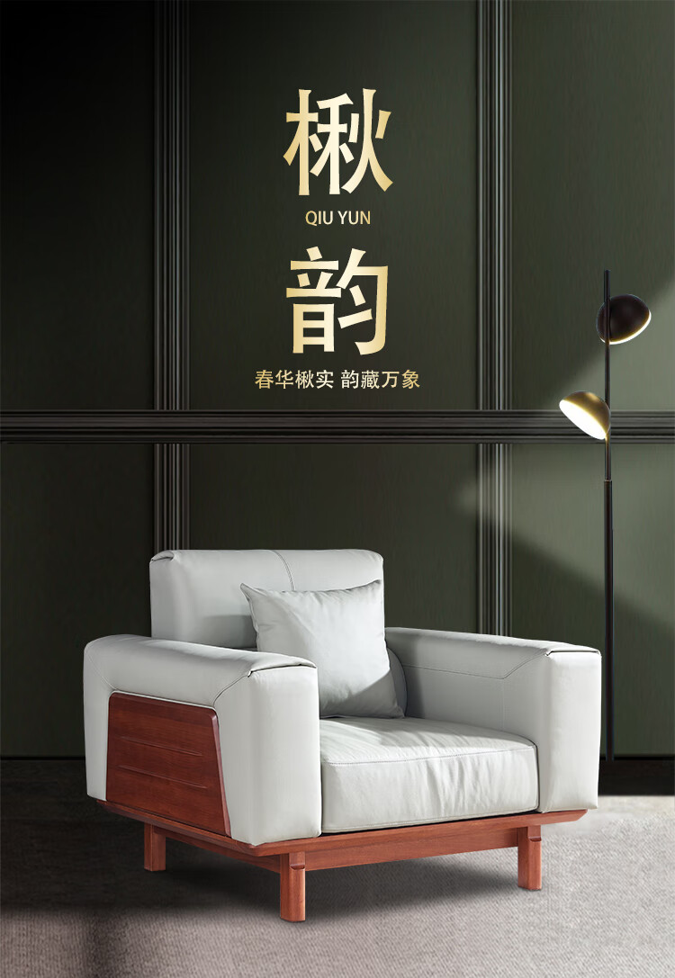 光明实木沙发现代简约软包沙发客厅楸木沙发 3894 1+1+3组合