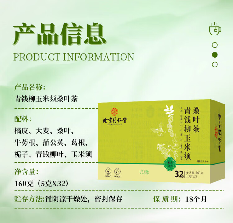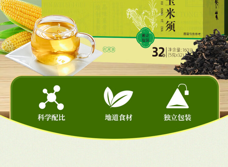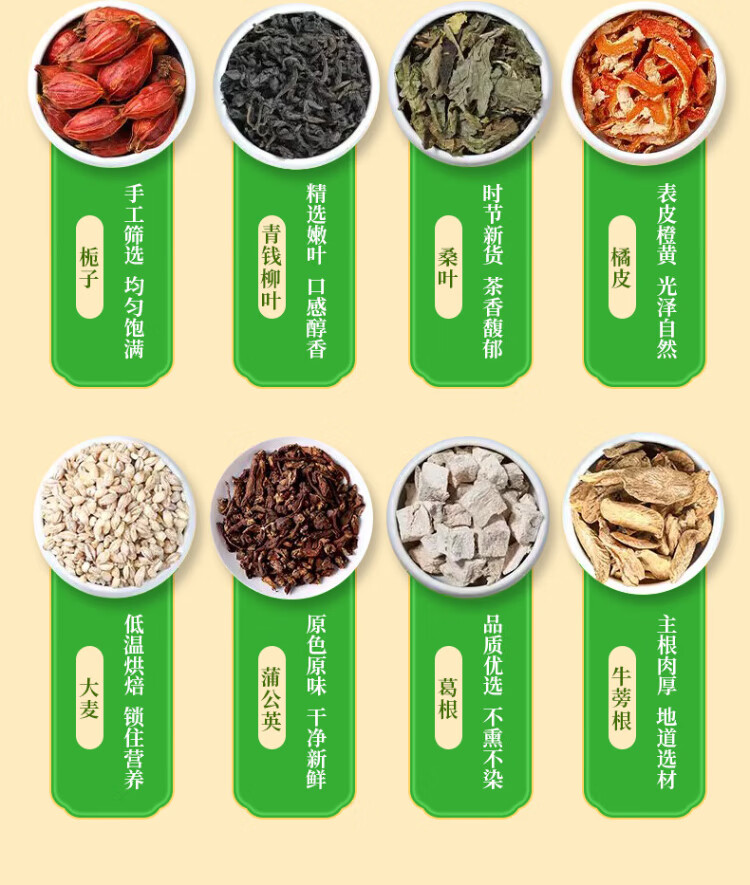 Tongrentang corn silk mulberry leaf tea green money willow leaf kudzu root orange peel burdock root gardenia health tea soaked in water 160g