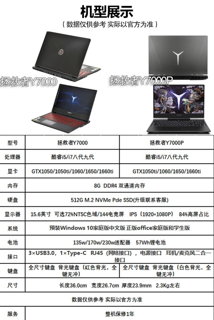 联想拯救者Y7000P二手笔记本电脑GTX1650吃鸡电竞游戏本 19款Y7000 i5-9300H 1050 16G 512G固态