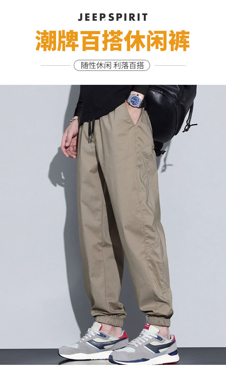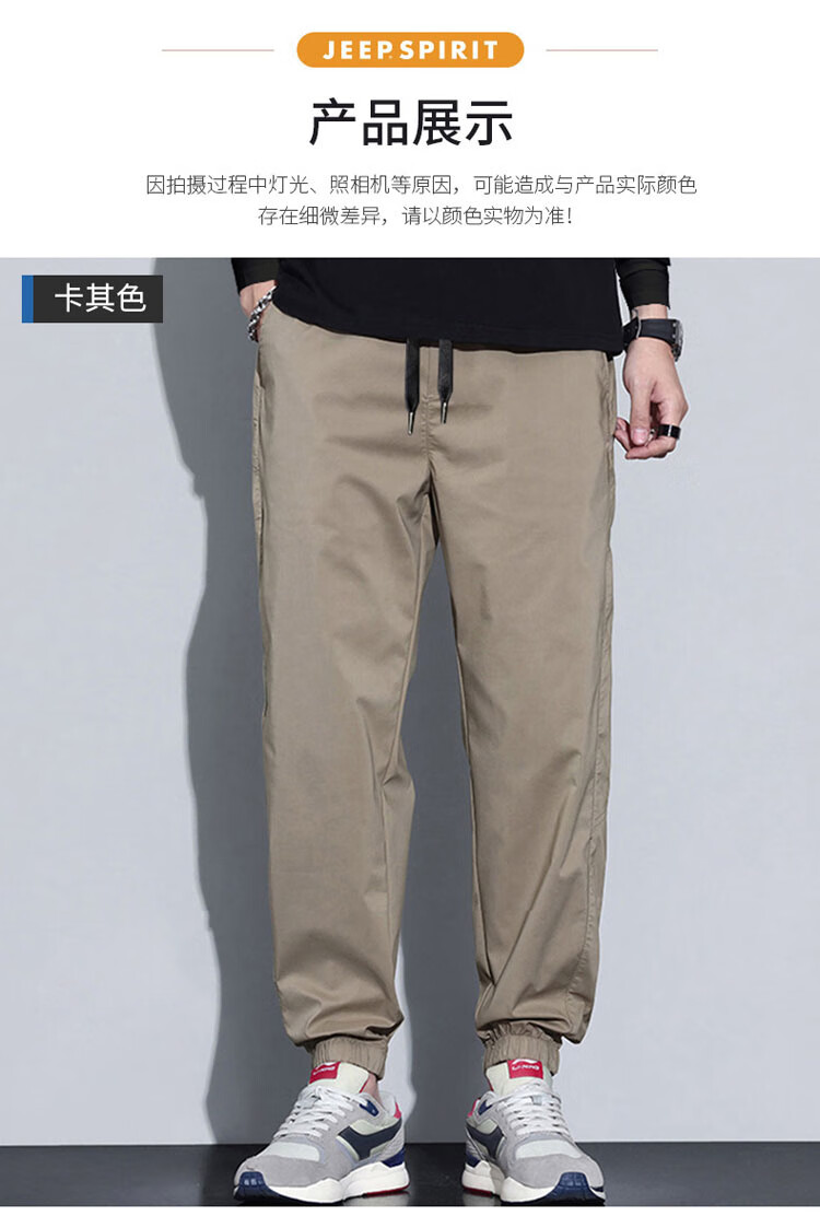 JEEP SPIRIT Jeep casual pants men's autumn and winter loose ankle-length nine-point pants outdoor mountain overalls khaki 3XL
