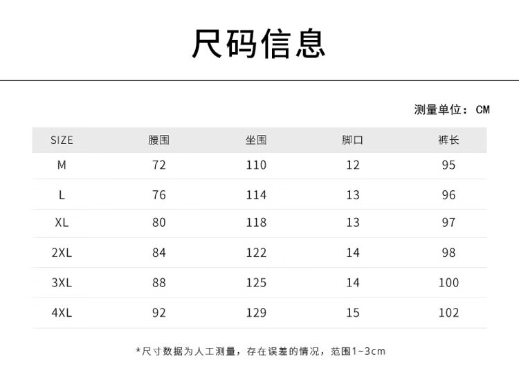 Outseam (cm) 99 cm 101.5 cm 104 cm 106.5 cm 109 cm