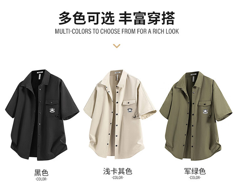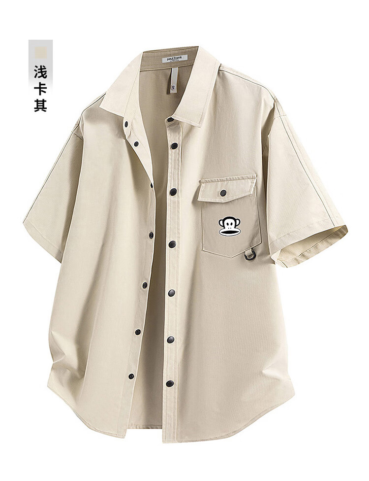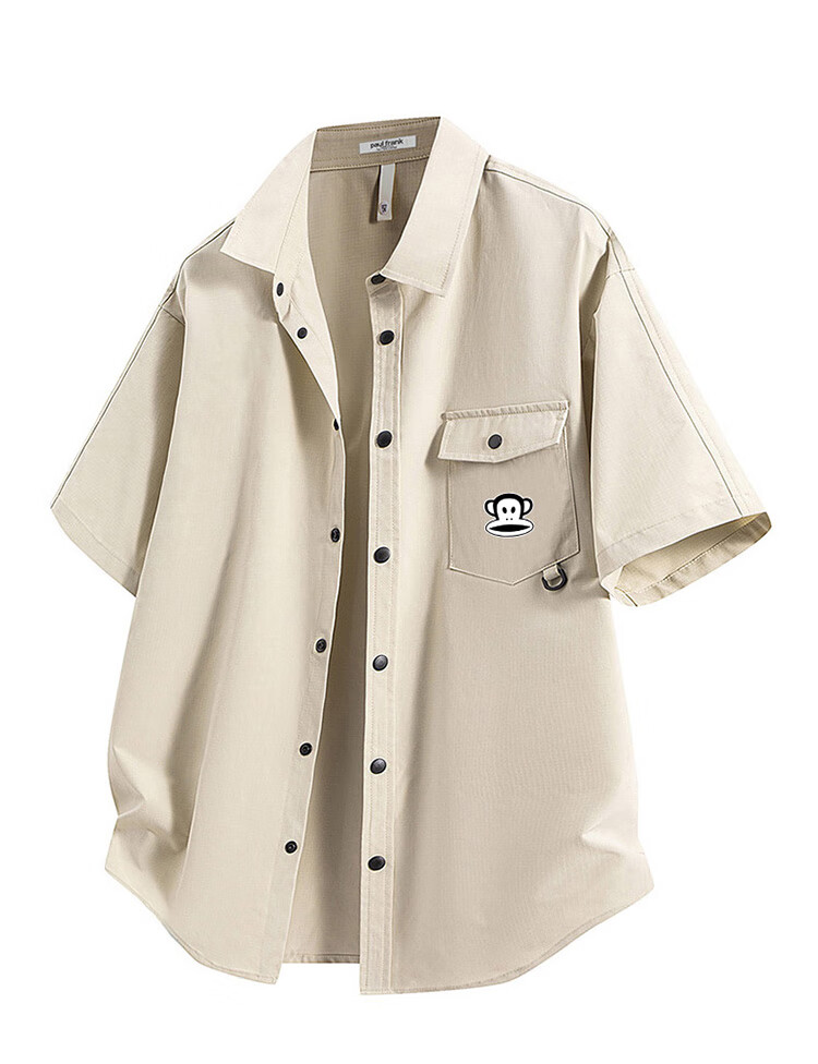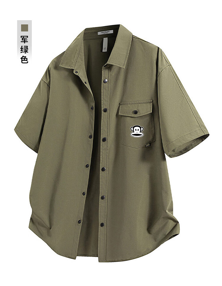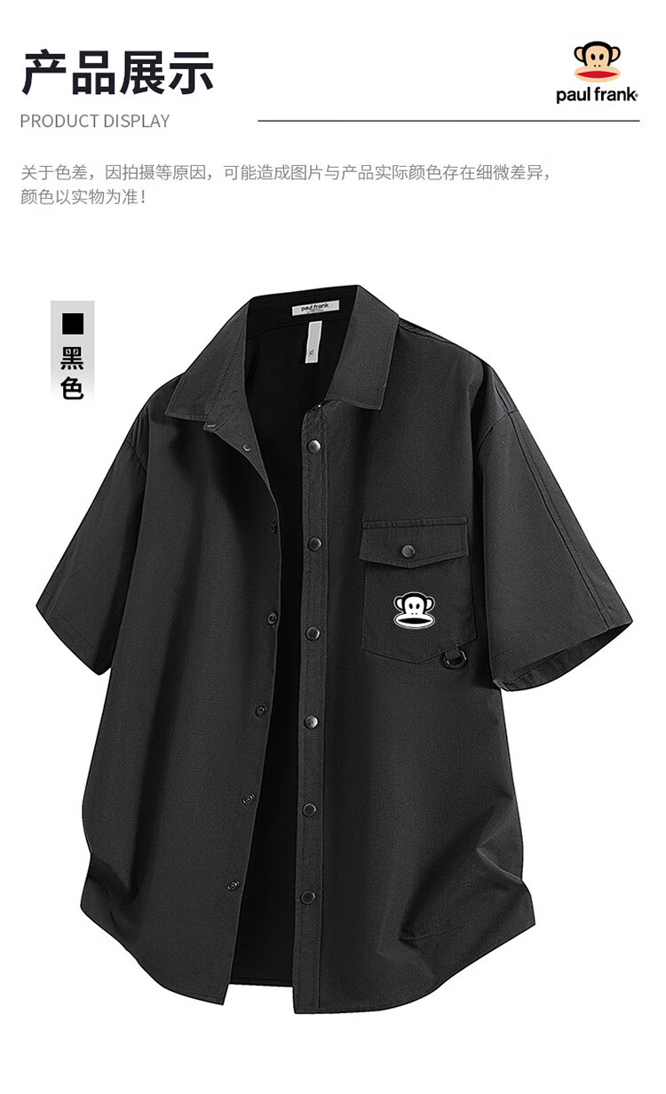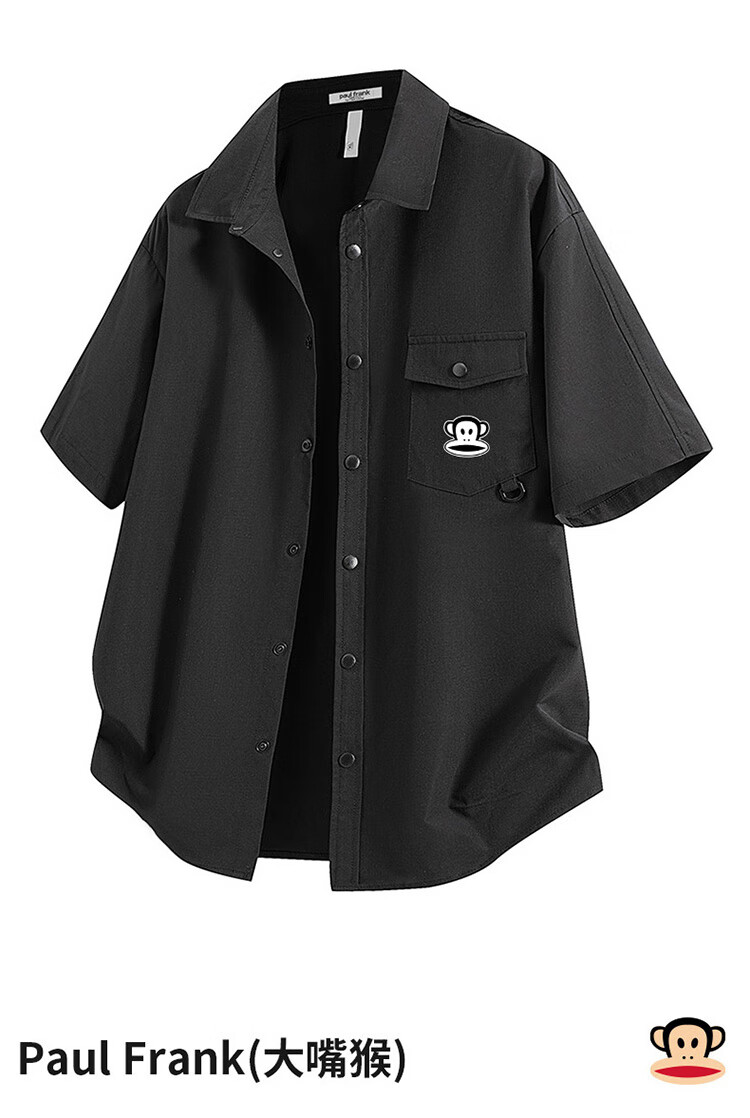 Paul Frank short-sleeved shirt men's summer loose casual shirt men's trendy brand top jacket men's black XL