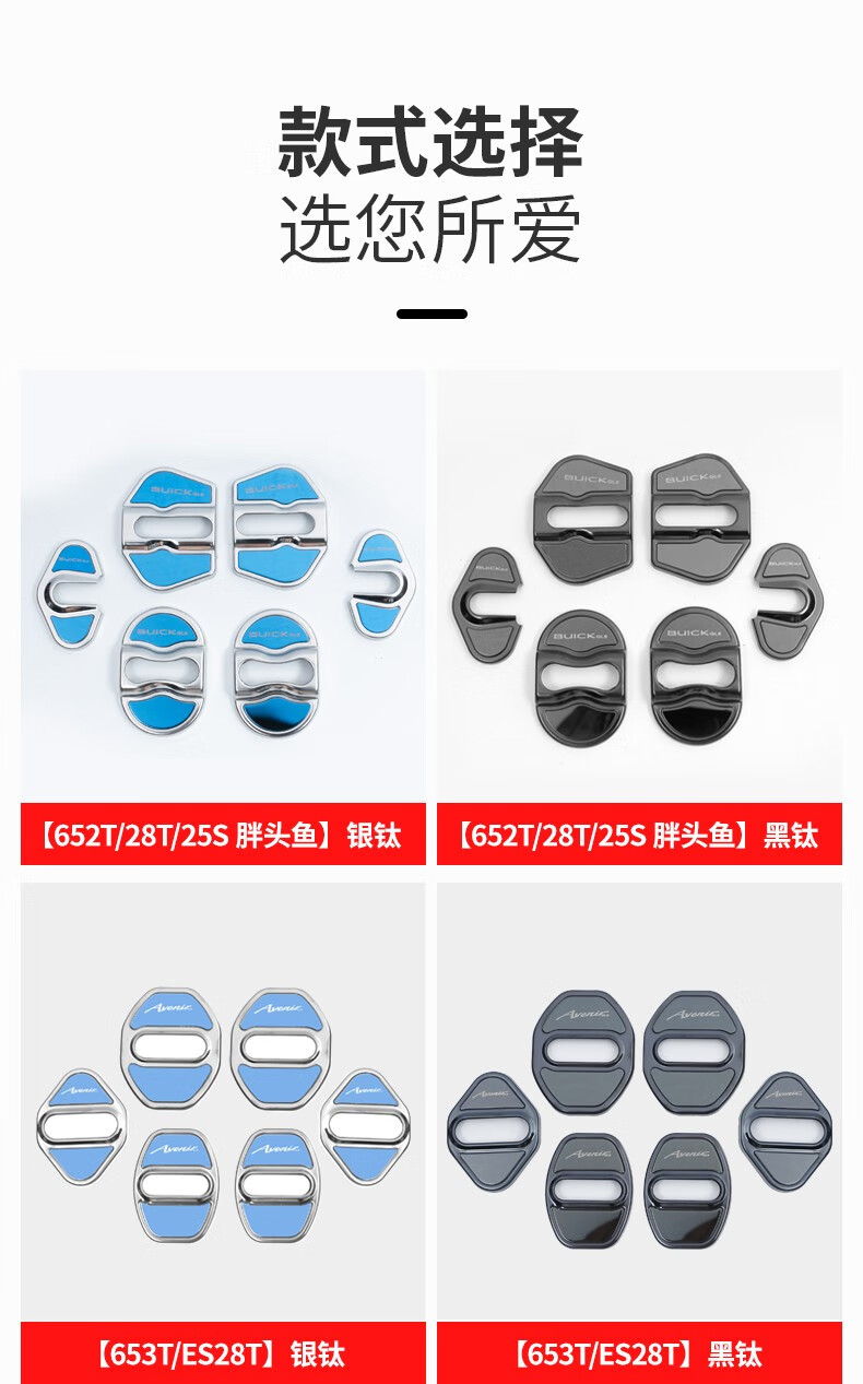 Shamit Buick gl8 door lock protection cover anti-rust limiter protection cover ES Lu Zun 653T2 lock cover land business class decoration parts gl8 modification 652T/25S/fat head fish lock cover-black titanium 6 pieces