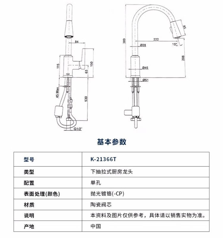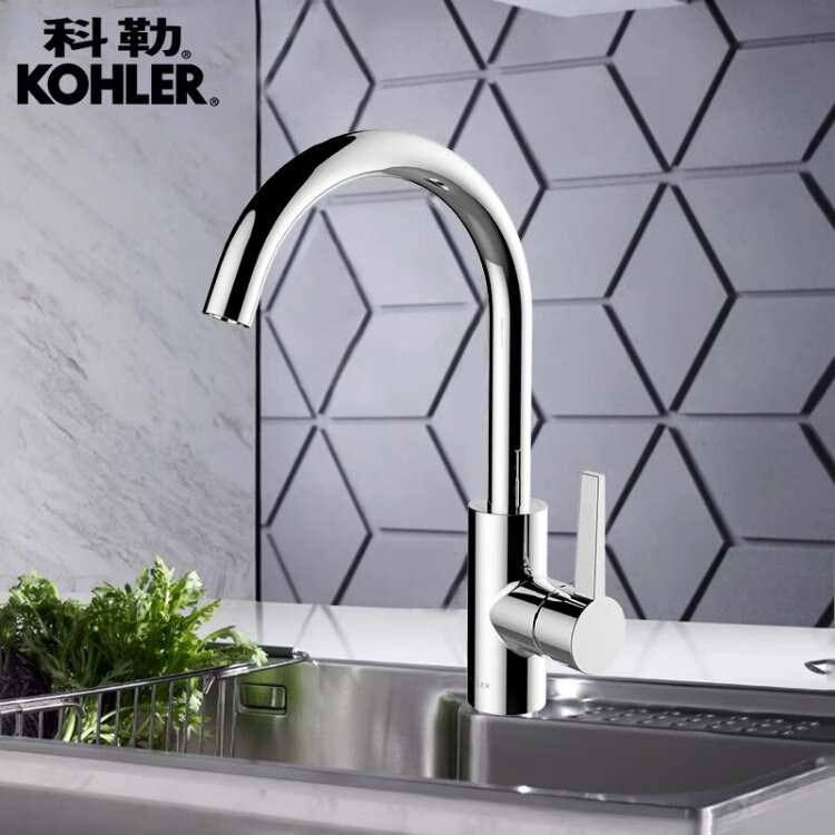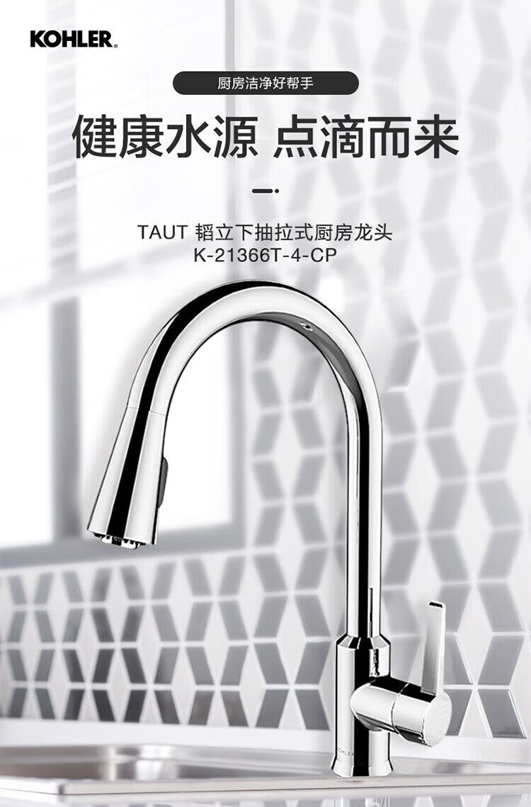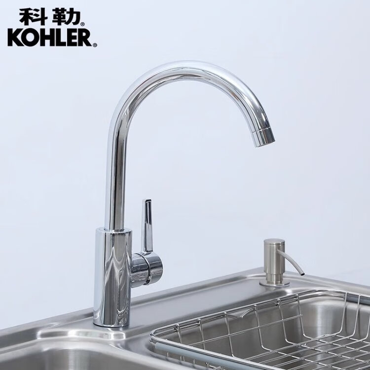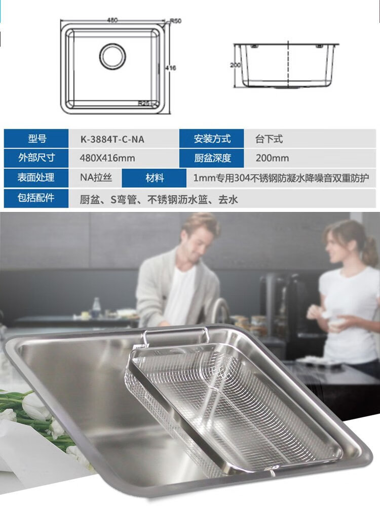 Kohler (KOHLER) kitchen sink and vegetable sink above and below the counter single-slot package thickened 304 stainless steel dish sink and vegetable sink 3884T-C-NA single sink + 21366 pull-out faucet