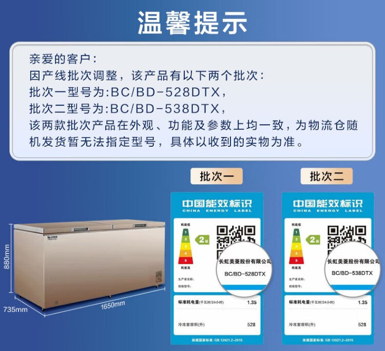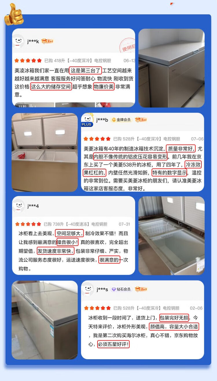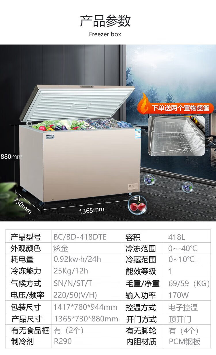 Meiling (MeiLing) Congélateur 418/528/738 litres grand congélateur commercial congélateur réfrigéré armoire de conversion à très basse température commercial aliments super cuits thé congélation rapide armoire fraîche grande capacité congélateur subvention BC/BD-528DTX contrôle de la machine 528L