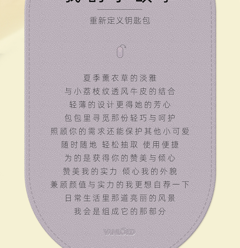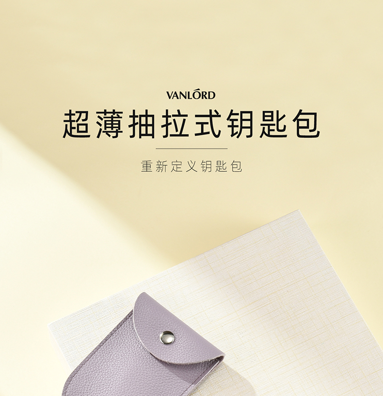 Vanlord Schlüsseltasche für Damen, kompakte Mini-ultradünne ausziehbare Schlüsselaufbewahrung, süße Autoschlüsseltasche, Lavendel-Hellviolett