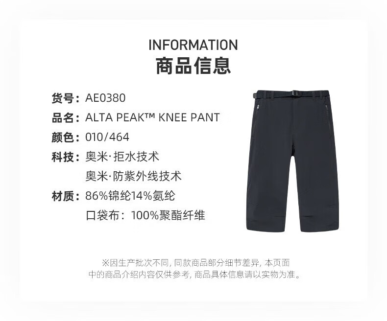 Columbia Outdoor Men's Spring and Summer Removable Belt Water-Repellent Quick-drying Cropped Pants Shorts AE0380 464 - Size Small S