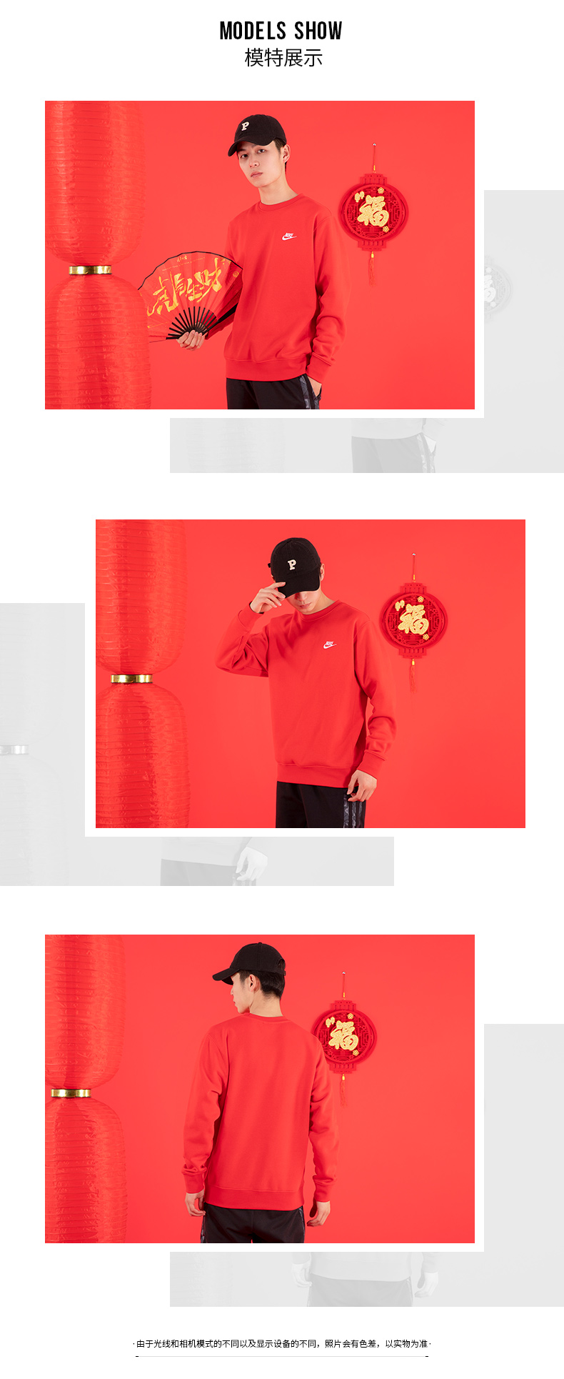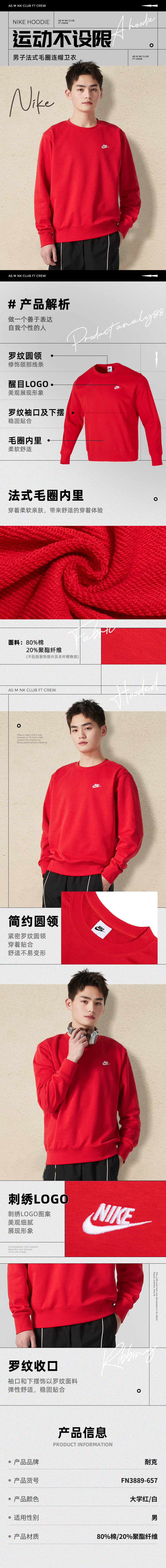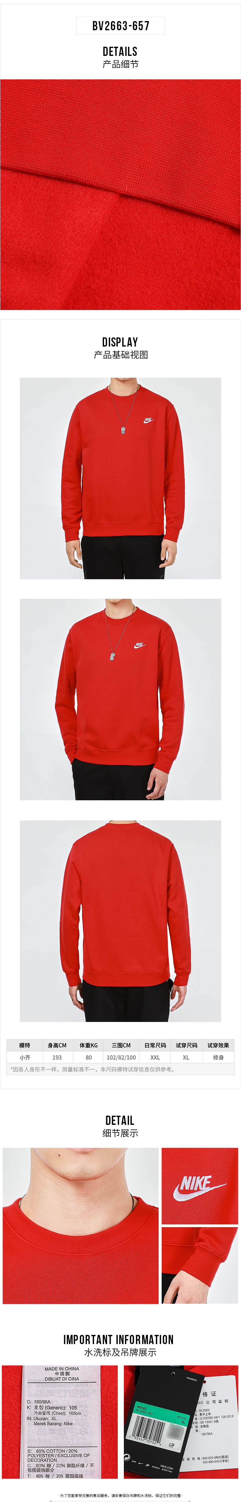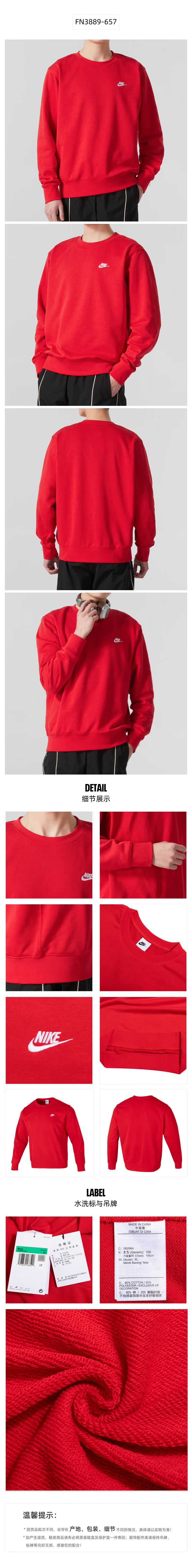 Nike (NIKE) sweatshirt men's 2025 autumn and winter new sports casual wear knitted long-sleeved jacket comfortable round neck pullover FN3889-657/Terry/China Red S (165/84A)